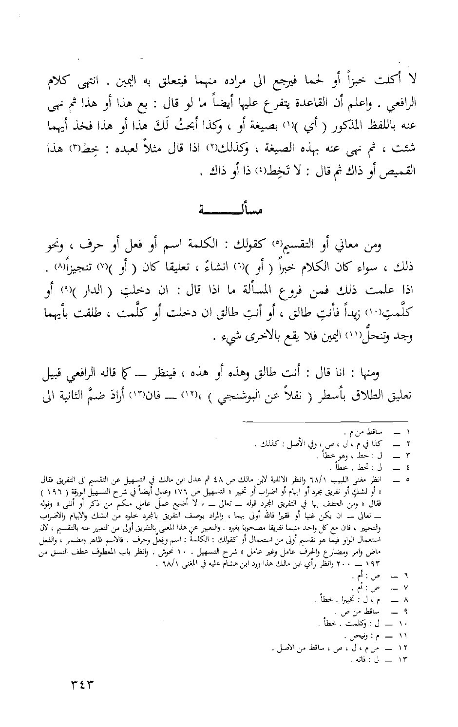 وَمِنْهَا أَنا قَالَ أَنْت طَالِق وَهَذِه أَو هَذِه فَينْظر كَمَا قَالَه الرَّافِعِيّ قبيل تَعْلِيق الطَّلَاق بأسطر نقلا عَن البوشنجي فَإِن أَرَادَ ضم الثَّانِيَة إِلَى