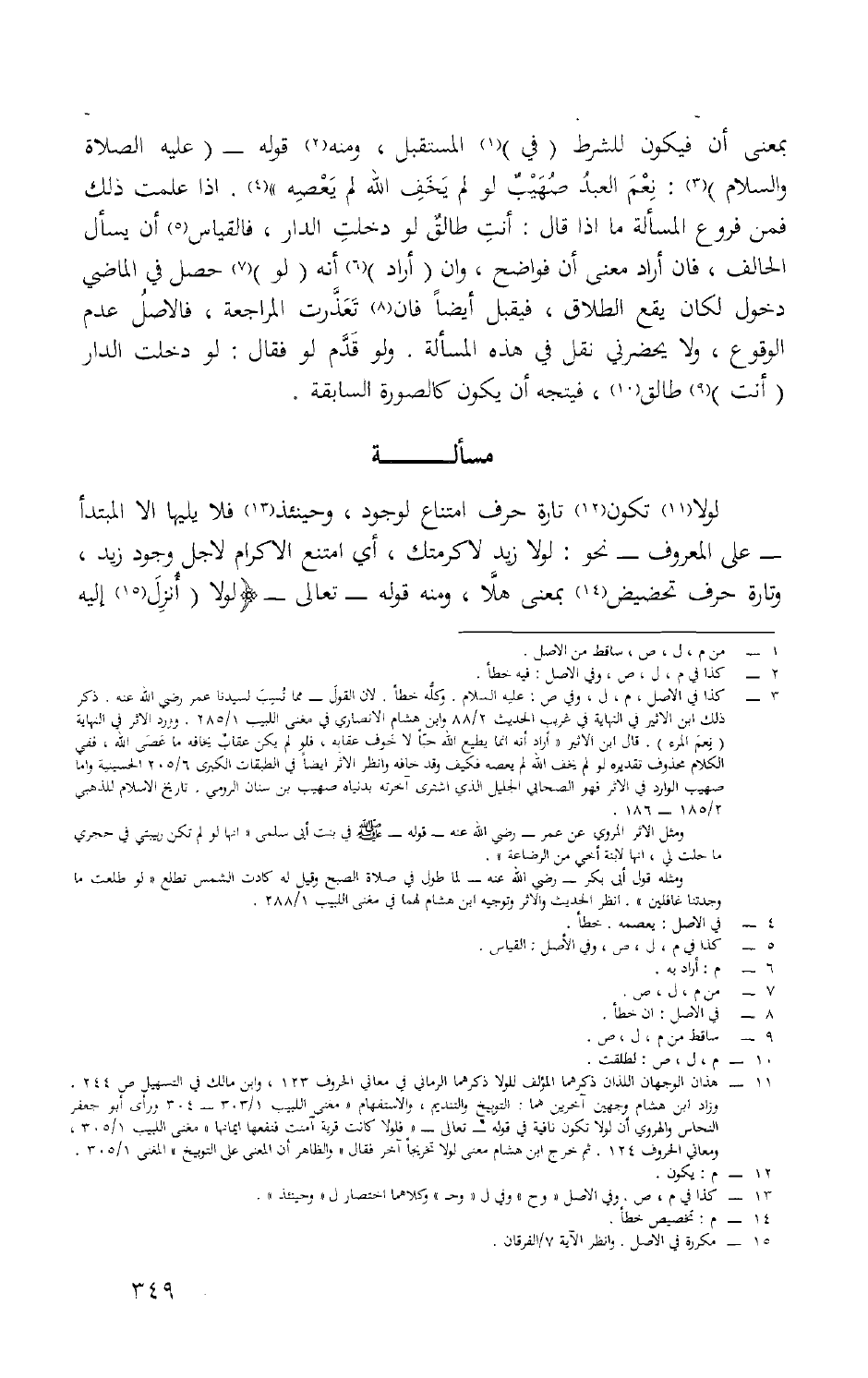 بِمَعْنى أَن فَيكون للشّرط فِي الْمُسْتَقْبل وَمِنْه قَوْله عَلَيْهِ الصَّلَاة وَالسَّلَام نعم العَبْد صُهَيْب لَو لم يخف الله لم يَعْصِهِ إِذا علمت ذَلِك فَمن فروع الْمَسْأَلَة مَا إِذا قَالَ أَنْت طَالِق لَو دخلت الدَّار فَالْقِيَاس أَن يسْأَل الْحَالِف فَإِن أَرَادَ معنى أَن فَوَاضِح وَإِن أَرَادَ أَنه لَو حصل فِي الْمَاضِي دُخُول لَكَانَ يَقع الطَّلَاق فَيقبل أَيْضا فَإِن تَعَذَّرَتْ الْمُرَاجَعَة فَالْأَصْل عدم الْوُقُوع وَلَا يحضرني نقل فِي هَذِه الْمَسْأَلَة وَلَو قدم لَو فَقَالَ لَو دخلت الدَّار أَنْت طَالِق فَيتَّجه أَن يكون كالصورة السَّابِقَة