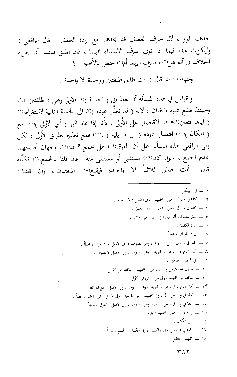 حذف الْوَاو لِأَن حرف الْعَطف قد يحذف مَعَ إِرَادَة الْعَطف قَالَ الرَّافِعِيّ وَليكن هَذَا فِيمَا إِذا نوى صرف الِاسْتِثْنَاء إِلَيْهِمَا فَإِن أطلق فَيُشبه أَن يَجِيء الْخلاف فِي أَنه هَل ينْصَرف إِلَيْهِمَا أم يخْتَص بالأخيرة وَمِنْهَا إِذا قَالَ أَنْت طَالِق طَلْقَتَيْنِ وَوَاحِدَة إِلَّا وَاحِدَة
