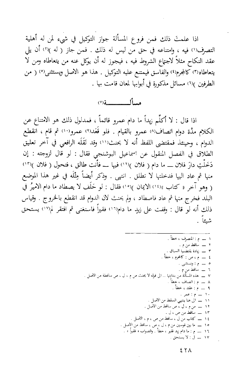 إِذا علمت ذَلِك فَمن فروع الْمَسْأَلَة جَوَاز التَّوْكِيل فِي شَيْء لمن لَهُ أَهْلِيَّة التَّصَرُّف فِيهِ وامتناعه فِي حق من لَيْسَ لَهُ ذَلِك فَمن جَازَ لَهُ أَن يَلِي عقد النِّكَاح مثلا لِاجْتِمَاع الشُّرُوط فِيهِ فَيجوز لَهُ أَن يُوكل عَنهُ من يتعاطاه وَمن لَا يتعاطاه كالمجرم وَالْفَاسِق فَيمْتَنع عَلَيْهِ التَّوْكِيل هَذَا هُوَ الأَصْل وَيسْتَثْنى من الطَّرفَيْنِ مسَائِل مَذْكُورَة فِي أَبْوَابهَا لمعان قَامَت بهَا