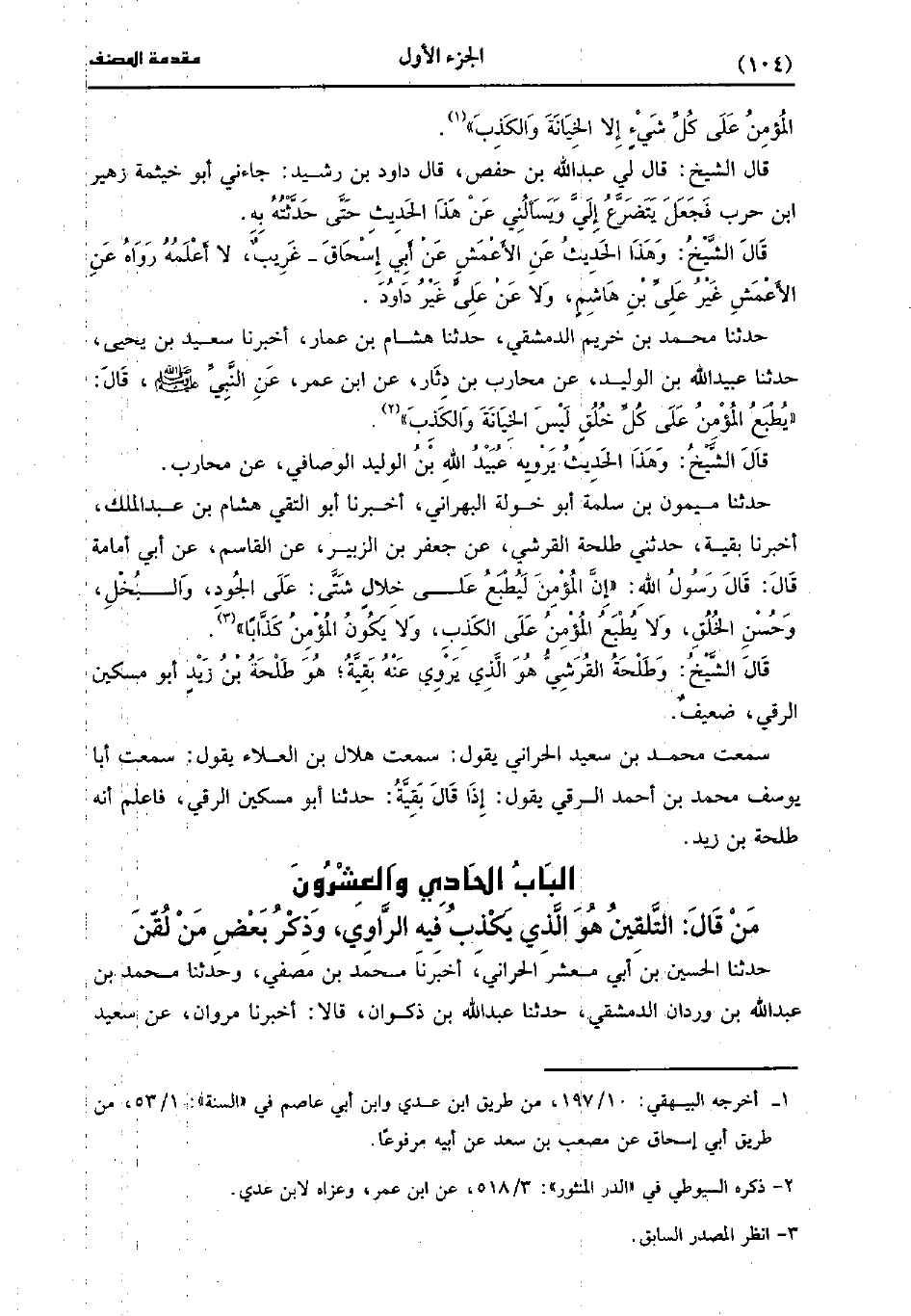 قَالَ الشَّيْخُ: وَطَلْحَةُ القُرَشِيُّ هُوَ الَّذِي يَرْوِي عَنْهُ بَقِيَّةُ هُوَ طَلْحَةُ بْنُ زَيْدٍ أَبُو مِسْكِينٍ الرِّقِّيُّ، ضَعِيفٌ.