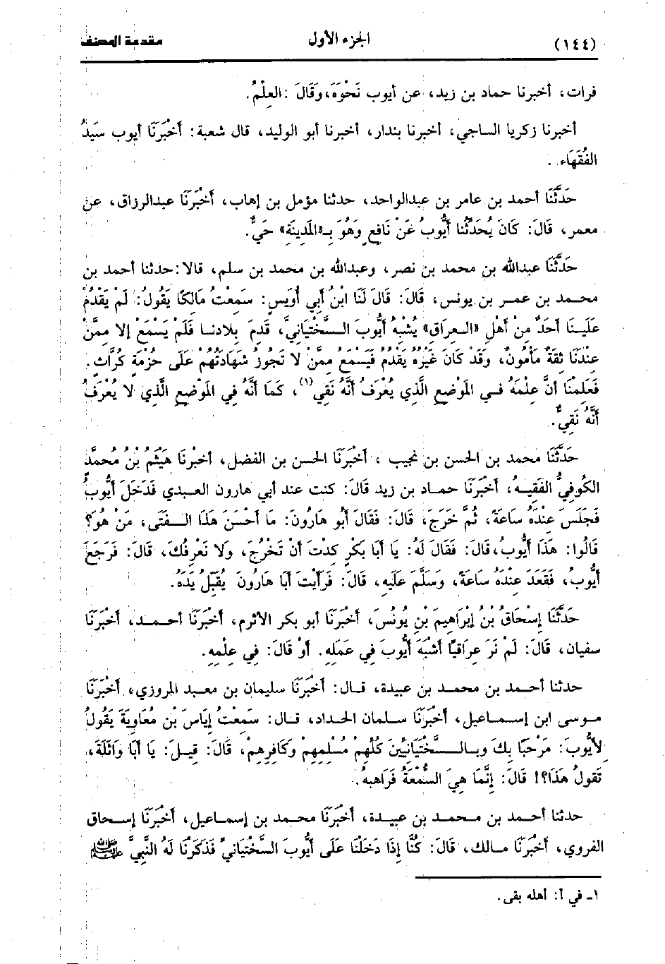فُرَاتٍ، أَخْبَرنا حَمَّادُ بْنُ زَيْدٍ عَنْ أَيُّوبَ؛ نَحْوَهُ، وَقَالَ: الْعِلْمُ.
