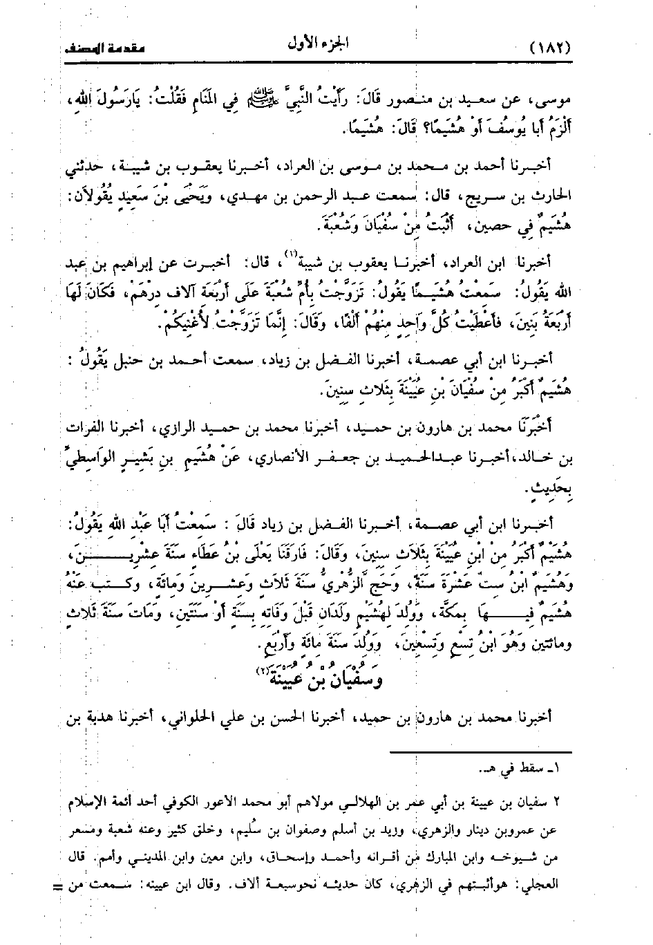 حَدَّثَنَا ابْنُ أَبِي عِصْمَةَ، أَخْبَرنا الْفَضْلُ بْنُ زِيَادٍ، سَمِعْتُ أَحْمَدَ بْنَ حَنْبَلٍ يَقُولُ: هُشَيْمٌ أَكْبَرُ مِنْ سُفْيَانَ بْنِ عُيَينة بِثَلاثِ سِنِينَ.