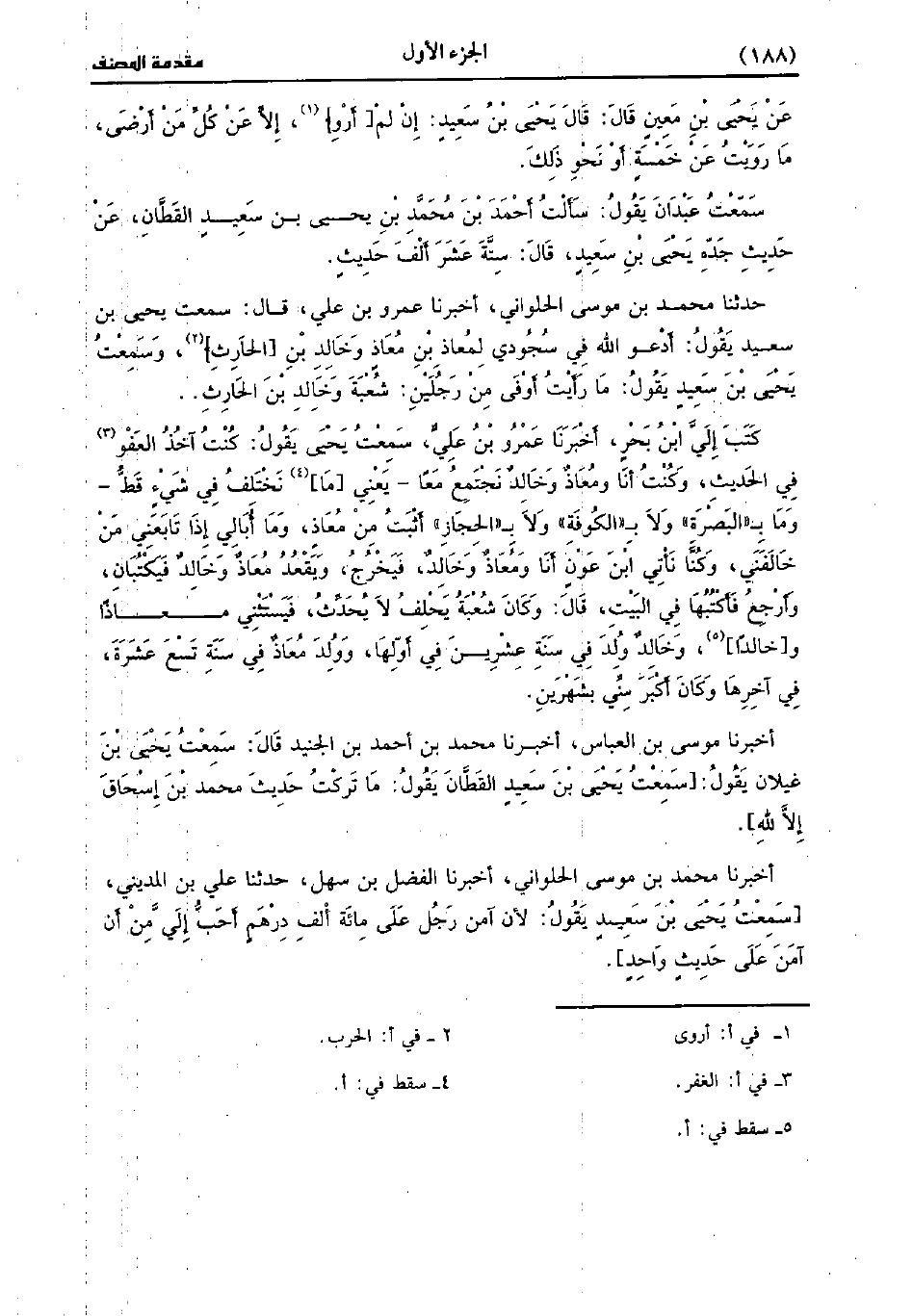 حَدَّثَنَا مُحَمد بْنُ مُوسَى الْحُلْوَانِيُّ، أَخْبَرنا الْفَضْلُ بْنُ سَهْلٍ، حَدَّثَنا عَلِيُّ بْنُ الْمَدْيَنِيِّ، سَمِعْتُ يَحْيى بْنَ سَعِيد يَقُولُ: لأَنْ آمَنُ رجل (**كنت أرجوها رجلا) على مِئَة أَلْفِ دِرْهَمٍ أَحَبُّ إِلَيَّ مِنْ أَنْ آمَنُ عَلَى حَدِيثٍ وَاحِدٍ.