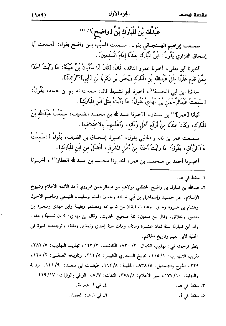 حَدَّثَنَا ابْنُ أَبِي الْعِصْمَةِ، أَخْبَرنا أَبُو نَشِيطٍ، قَالَ: سَمِعْتُ نُعَيْمُ بْنُ حَمَّادٍ يَقُولُ: سَمعتُ عَبد الرَّحْمَنِ بْنَ مَهْدِيٍّ يَقُولُ: مَا رَأَيْتُ مثل ابْنُ الْمُبَارَكِ.