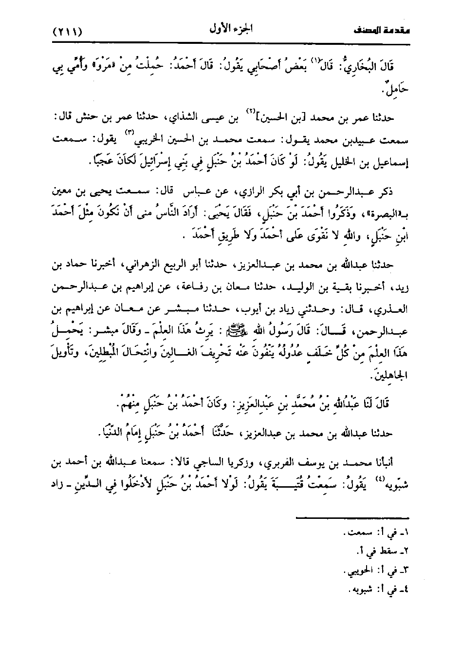 زَادَ الْفِرْبَرِيُّ: قُلْتُ لِقُتْيَبَةَ: تَضُمُّ أَحْمَدَ بْنَ حَنْبَلٍ إِلَى التَّابِعِينَ؟ فَقَالَ: إِلَى خِيَارِ التَّابِعِينَ.