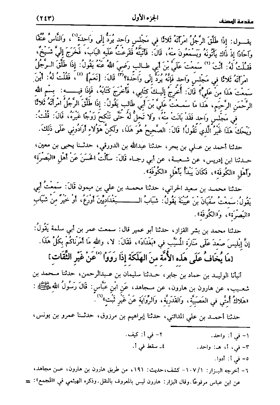 مَا يُخَافُ عَلَى هَذِهِ الأُمَّةِ مِنَ الْهَلَكَةِ إِذَا رَوَوْا عَنْ غَيْرِ الثِّقَاتِ.