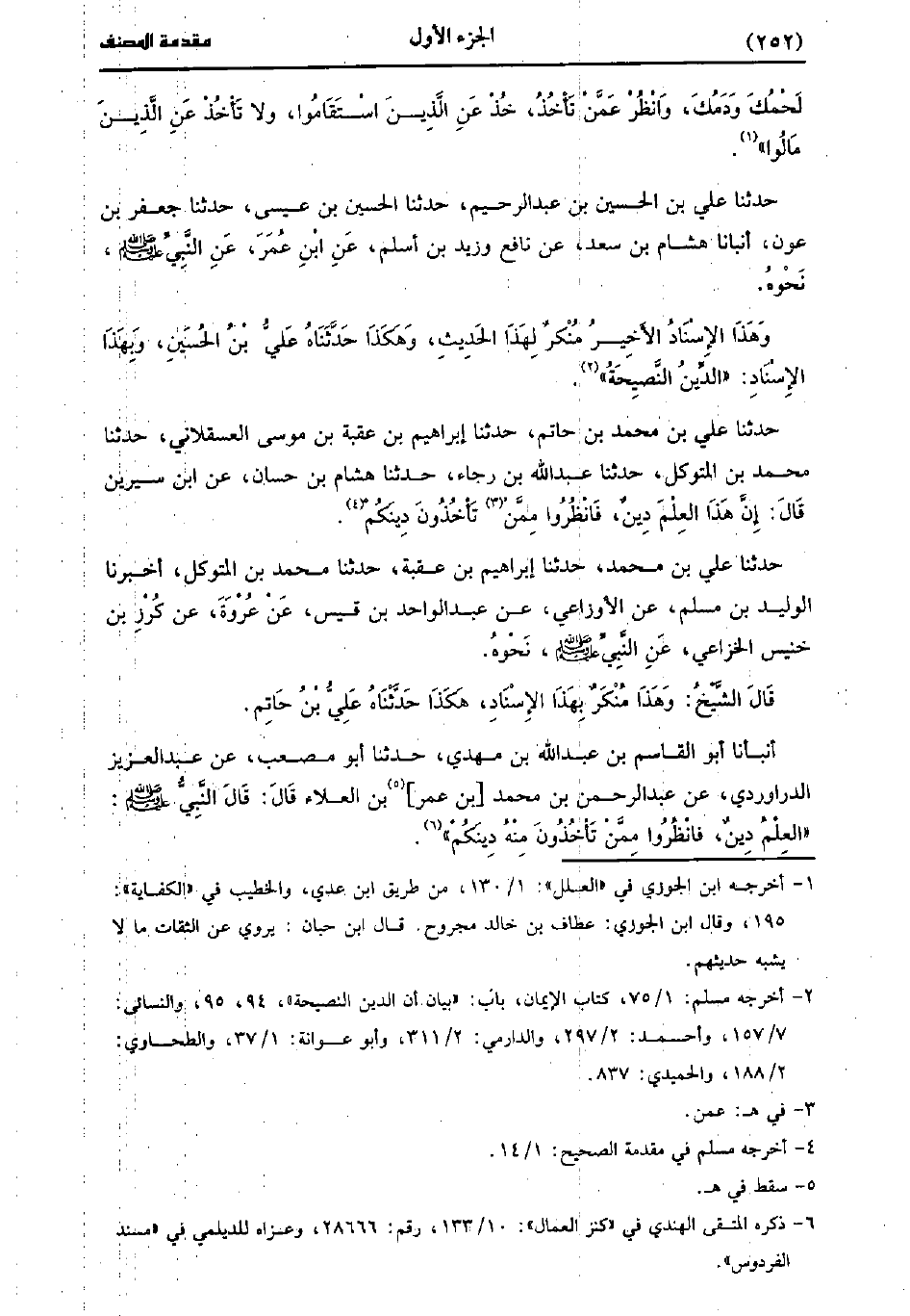 حَدَّثَنَا عَلِيُّ بْنُ مُحَمد بْنِ حَاتِمٍ، حَدَّثَنا إِبْرَاهِيمُ بْنُ عُقْبَةَ بْنِ مُوسَى الْعَسْقَلانِيُّ، حَدَّثَنا مُحَمد بْنُ الْمُتَوَكِّلِ، حَدَّثَنا عَبد اللَّهِ بْنُ رَجَاءٍ، حَدَّثَنا هِشَامُ بْنُ حَسَّانَ، عَنِ ابْنِ سِيرِين قَال: إِن هَذَا الْعِلْمُ دِينٌ، فَانْظُرُوا مِمَّنْ تَأْخُذُونَ دِينَكُمْ.