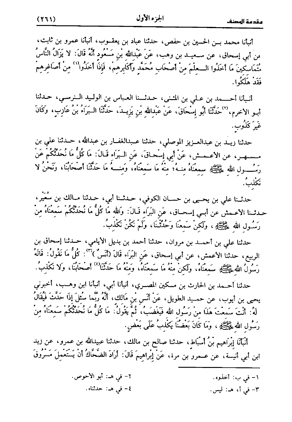 حَدَّثَنَا زَيْدُ بْنُ عَبد الْعَزِيزِ الْمَوْصِلِيُّ، حَدَّثَنا عَبد الْغَفَّارِ بْنُ عَبد اللَّهِ، حَدَّثَنا عَلِيُّ بْنُ مُسْهِرٍ، عَنِ الأَعْمَش، عَن أَبِي إِسْحَاقَ عَنِ الْبَرَاءِ قَال: مَا كُلُّ مَا نُحَدِّثُكُمْ عَنْ رَسُولِ اللَّهِ صَلَّى اللَّهُ عَلَيْهِ وَسَلَّمَ سَمِعْنَاهُ مِنْهُ، مِنْهُ مَا سَمِعْنَاهُ وَمِنْهُ مَا حَدَّثَنا أَصْحَابُنَا، وَنَحْنُ لا نَكْذِبُ.