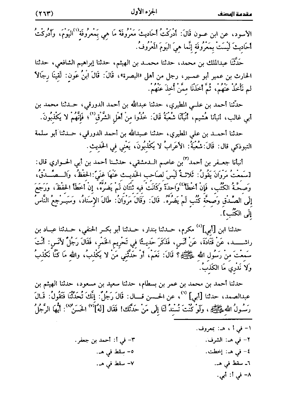 الأَسْوَدِ، عَنِ ابْنِ عَوْنٍ قَالَ: أَدْرَكْتُ أَحَادِيثَ مَعْرُوفَةً مَا هِيَ بِمَعْرُوفَةٍ الْيَوْمَ، وَأَدْرَكْتُ أَحَادِيثَ لَيْسَتْ بِمَعْرُوفَةٍ إِنَّمَا هِيَ الْيَوْمَ الْمَعْرُوفُ.