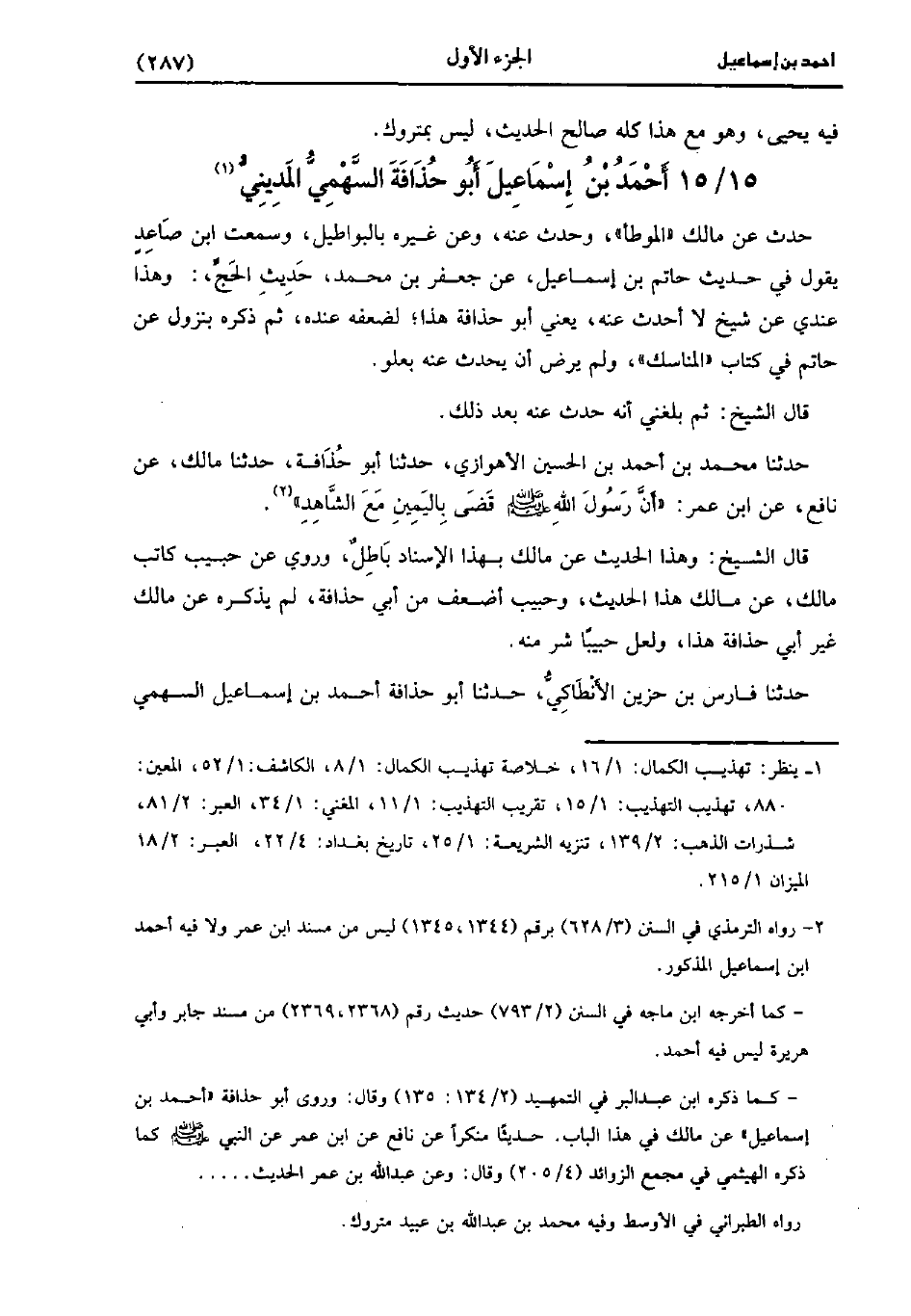 15- أَحْمَدُ بْنُ إِسْمَاعِيلَ أَبُو حُذَافَةَ السَّهْمِيُّ الْمَدْيَنِيُّ.
