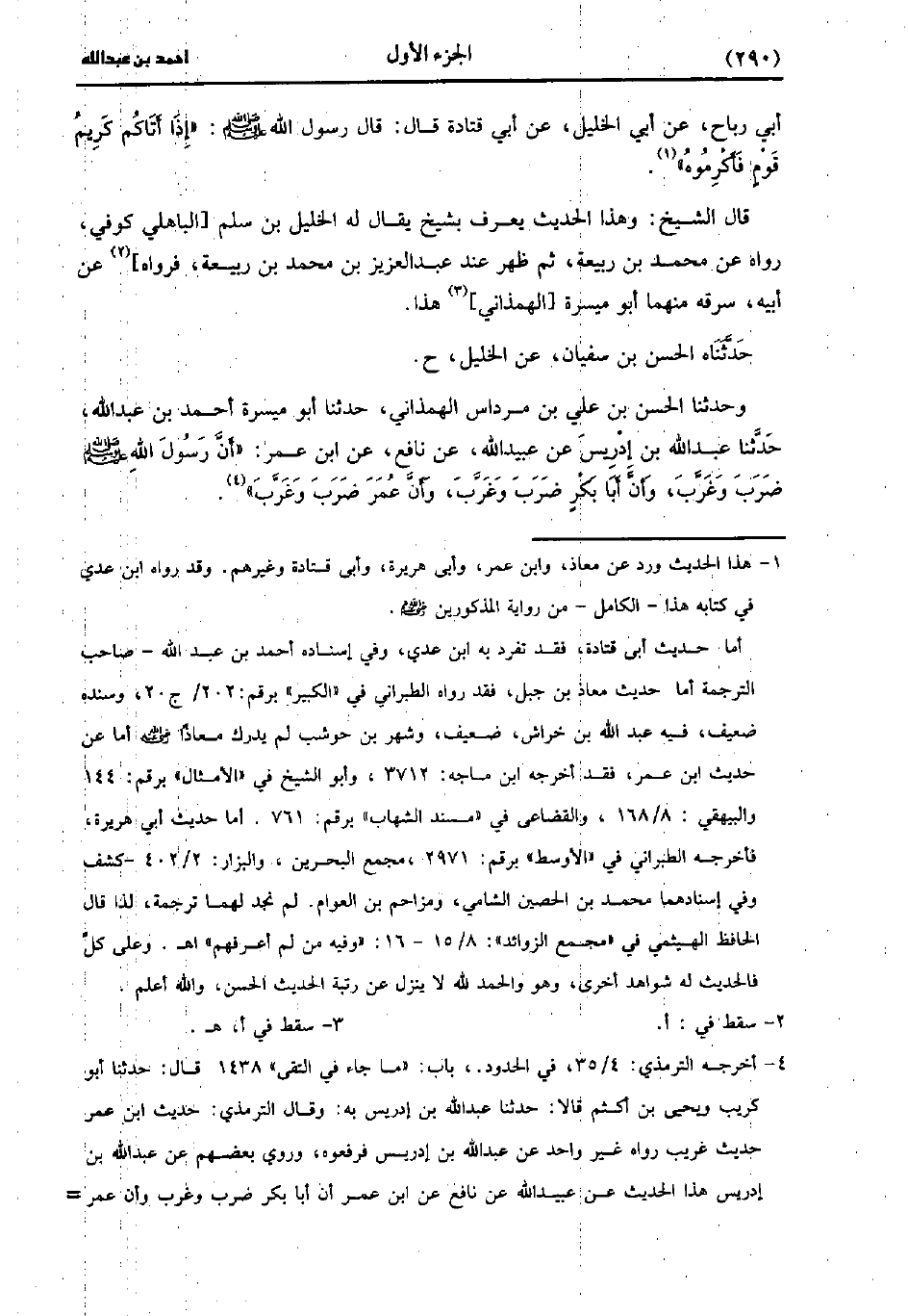 أَبِي رَبَاحٍ، عَن أَبِي الْخَلِيلِ، عَن أَبِي قَتَادَةَ، قَال: قَال رَسُولِ اللَّهِ صَلَّى اللَّهُ عَلَيْهِ وَسَلَّمَ: إِذَا أَتَاكُمْ كَرِيمُ قَوْمٍ فَأَكْرِمُوهُ.