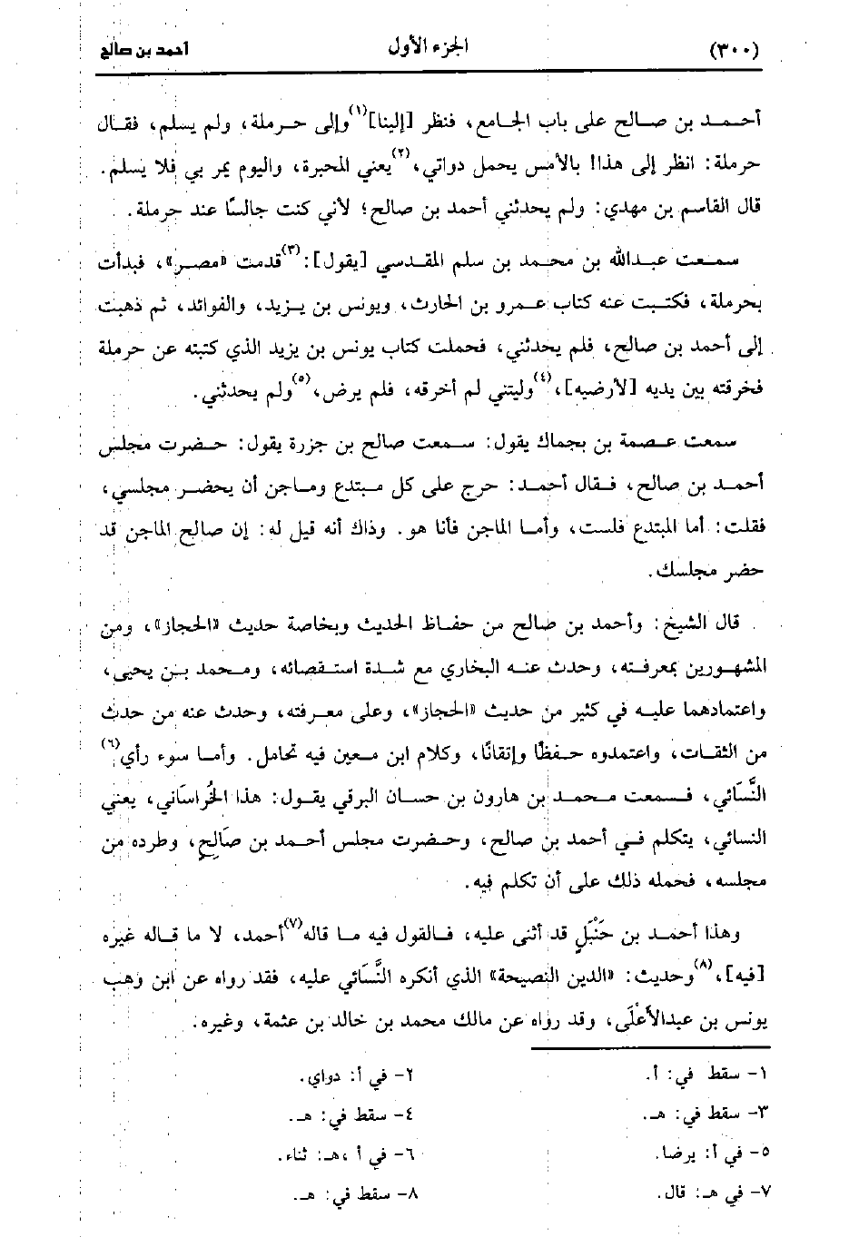 أحمد بن صالح على باب الجامع، فنظر إلينا وإلى حرملة ولم يسلم فقال حرملة: انظر إلى هذا بالأمس يحمل دواتي، يعني المحبرة، واليوم يمر بي فلا يسلم، قال القاسم بن مهدي: ولم يحدثني أحمد بن صالح لأني كنت جالسا عند حرملة.