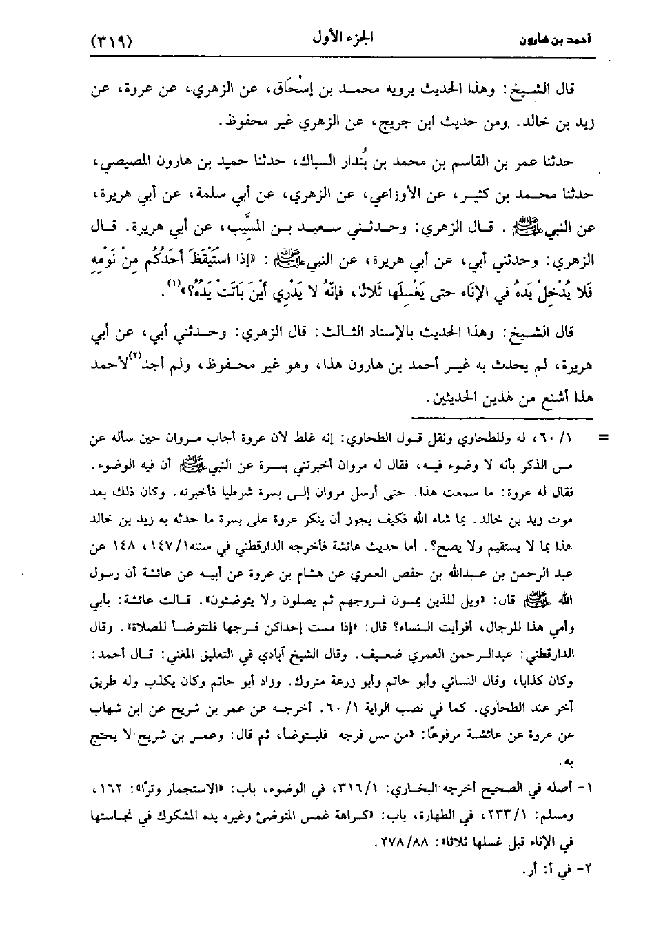 قَالَ الشَّيْخُ: وَهَذَا الْحَدِيثُ بِالإِسْنَادِ الثَّالِثِ قَالَ الزُّهْريّ: وَحَدَّثَنِي أَبِي، عَن أَبِي هُرَيْرَةَ، لَمْ يُحَدِّثْ بِهِ غَيْرُ أَحْمَدَ بْنِ هَارُونَ هَذَا، وَهو غَيْرُ مَحْفُوظٍ، وَلَمْ أَجِدْ لأَحْمَدَ هَذَا أَشْنَعَ مِنْ هذين الحديثين.
