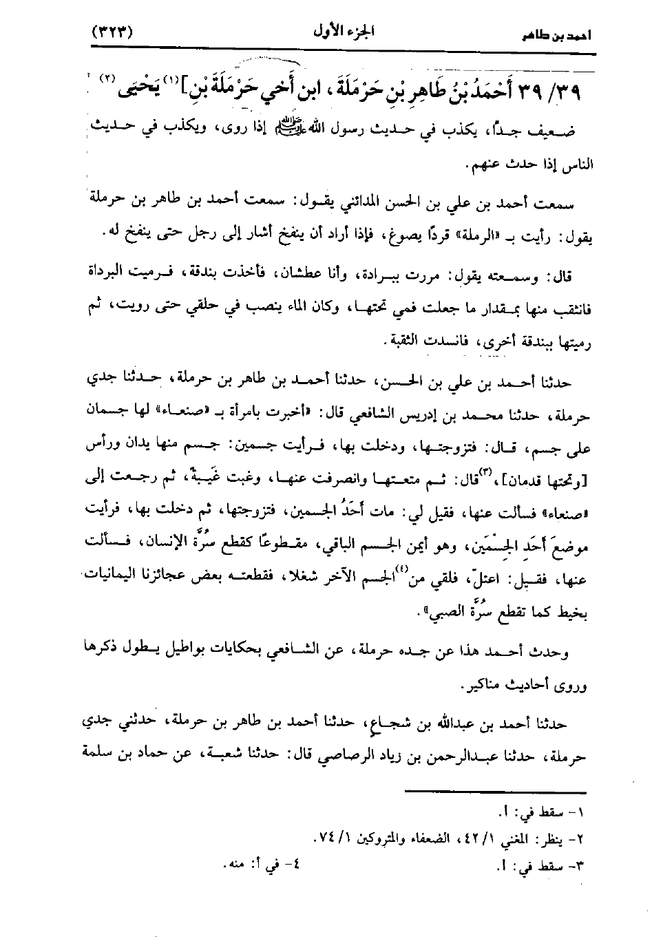 39- أحمد بن طاهر بن حرملة، ابْنُ أَخِي حَرْمَلَةَ بْنِ يَحْيى.