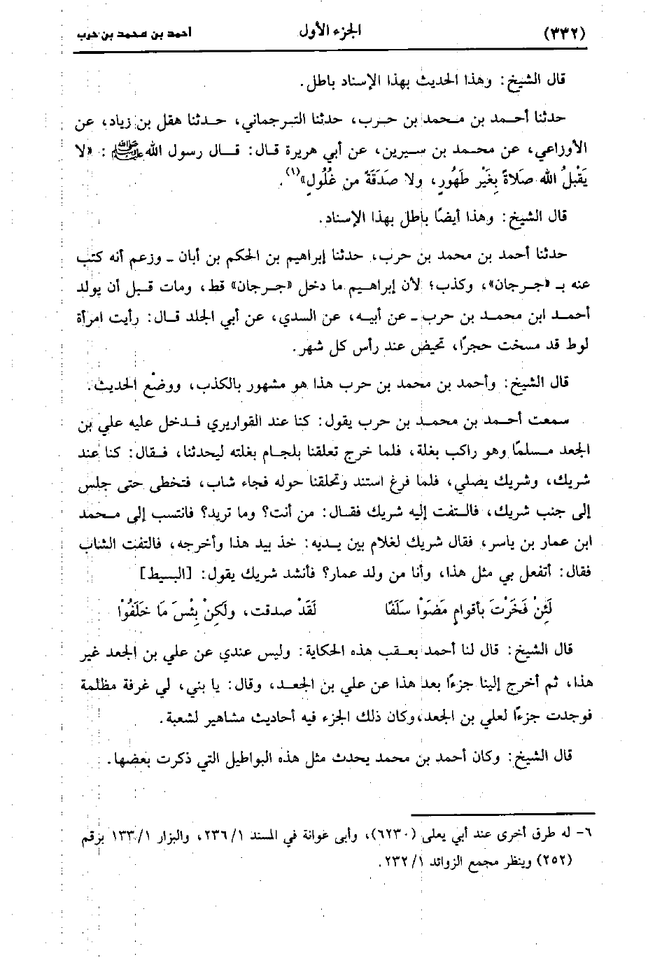 قال الشيخ: وأحمد بن مُحَمد بن حرب هذا هو مشهور بالكذب ووضع الحديث.