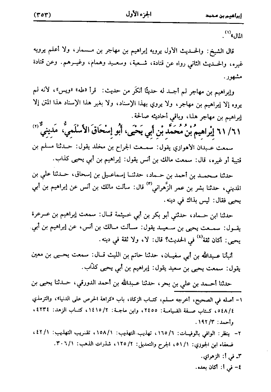 سَمِعْتُ عَبْدَانَ الأَهْوَازِيَّ يَقُولُ: سَمعتُ الجراح بن مخلد يقول: حَدَّثَنا مسلم بن قتيبة أو غيره، قَالَ: سَمِعْتُ مَالِكَ بْنَ أَنَسٍ يقول: إبراهيم بن أبي يَحْيى كذاب.