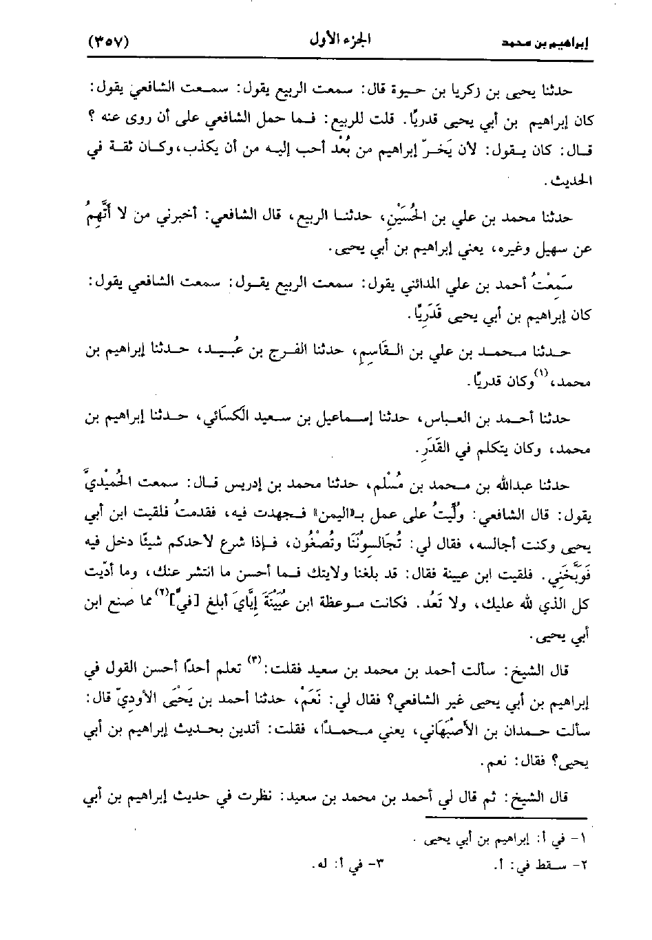قال الشيخ: سَأَلْتُ أَحْمَدَ بْنَ مُحَمَّدِ بْنِ سَعِيد فقلت: تعلم أحدا أحسن القول في إبراهيم بن أبي يَحْيى غير الشافعي؟ فقال لي: نعم، حَدَّثَنا أحمد بن يَحْيى الأودي، قالَ: سَألتُ حمدان بن الأصبهاني، يعني مُحَمدا فقلت: أتدين بحديث إبراهيم بن أبي يَحْيى؟ فقال: نعم.
