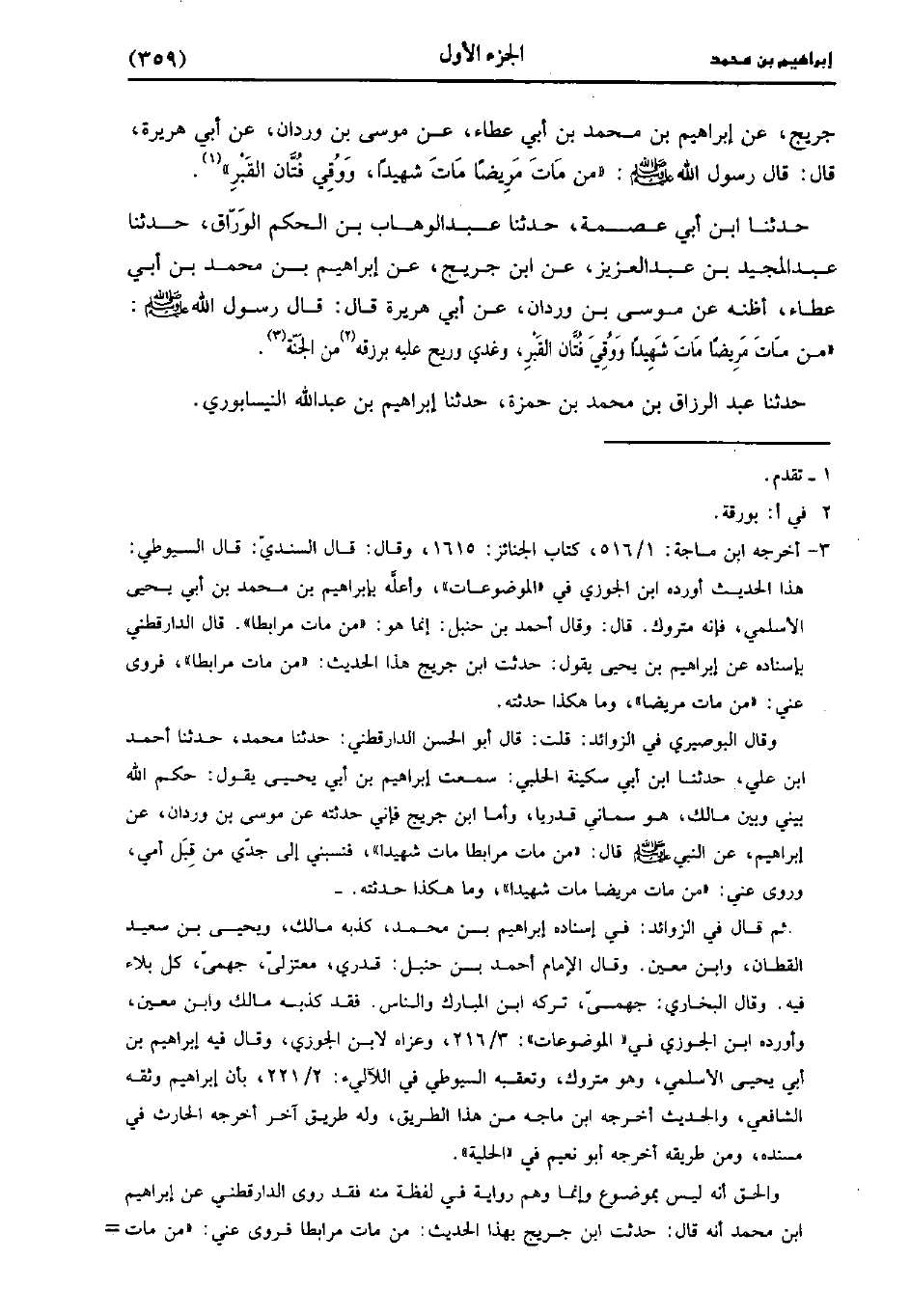 حَدَّثَنَا عَبد الرَّزَّاق بْنُ مُحَمد بْنِ حَمْزَةَ، حَدَّثَنا إِبْرَاهِيمُ بْنُ عَبد اللَّهِ النَّيْسَابُورِيُّ، حَدَّثَنَا خَلَفُ بْنُ أَيُّوبَ الْبَلْخِيُّ مُنْذُ سَبْعِينَ سَنَةً، حَدَّثَنا الْحَسَنُ بْنُ زِيَادٍ اللُّؤْلُئِيُّ، حَدَّثَنا ابْنُ جُرَيج، أَظُنُّهُ عَنْ إِبْرَاهِيمَ بْنِ مُحَمد، عَنْ مُوسَى بْنِ وَرْدَانَ، عَن أَبِي هُرَيْرَةَ، أَنّ رَسُولَ اللَّهِ صَلَّى اللَّهُ عَلَيْهِ وَسَلَّمَ صَلَّى اللَّهُ عَلَيه وسَلَّم قَال: مَنْ مَاتَ مَرِيضًا مَاتَ شَهِيدًا.