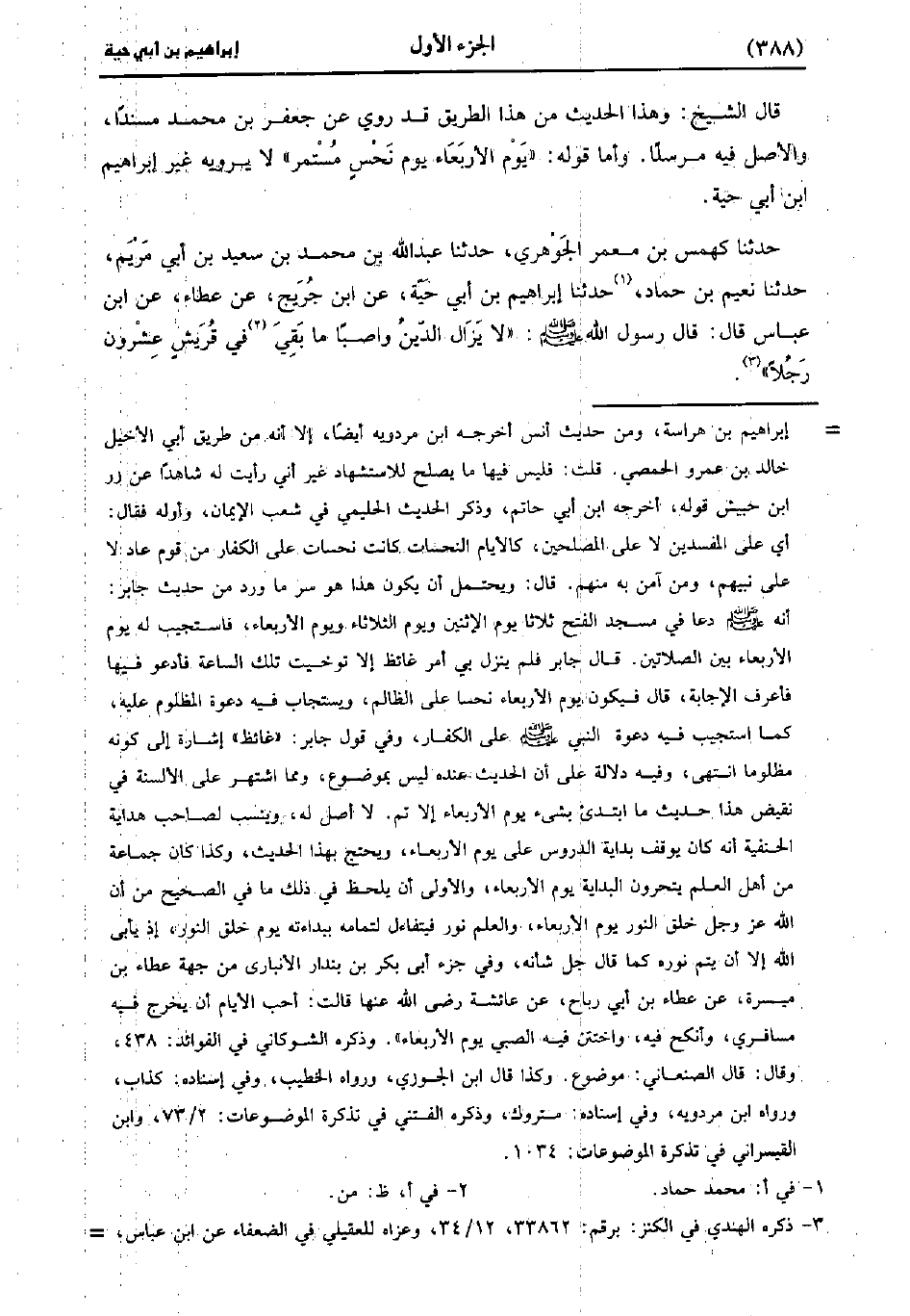 قَالَ الشَّيْخُ: وَهَذَا الْحَدِيثُ مِنْ هَذَا الطَّرِيقِ قَدْ رُوِيَ عَنْ جَعْفَرِ بْنِ مُحَمد مُسْنَدًا، وَالأَصْلُ فِيهِ مُرْسَلا، وَأَمَّا قَوْلُهُ: يَوْمُ الأَرْبَعَاءِ يَوْمُ نَحْسٍ مُسْتَمِرٍّ، لا يَرْوِيهِ غَيْرُ إِبْرَاهِيمَ بْنِ أَبِي حَيَّةَ.