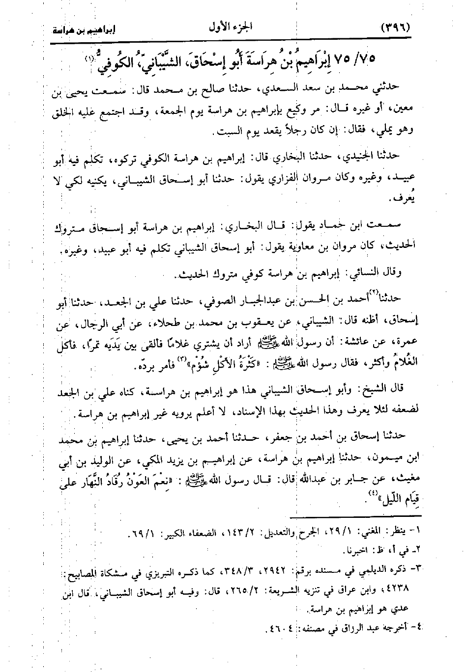 حَدَّثَنَا الجنيدي، حَدَّثَنا البُخارِيّ قال: إبراهيم بن هراسة الكوفي تركوه، تكلم فيه أبو عُبَيد وغيره، وكان مروان الفزاري يقول: حَدَّثَنا أبو إسحاق الشيباني، يكنيه لكي لا يعرف.