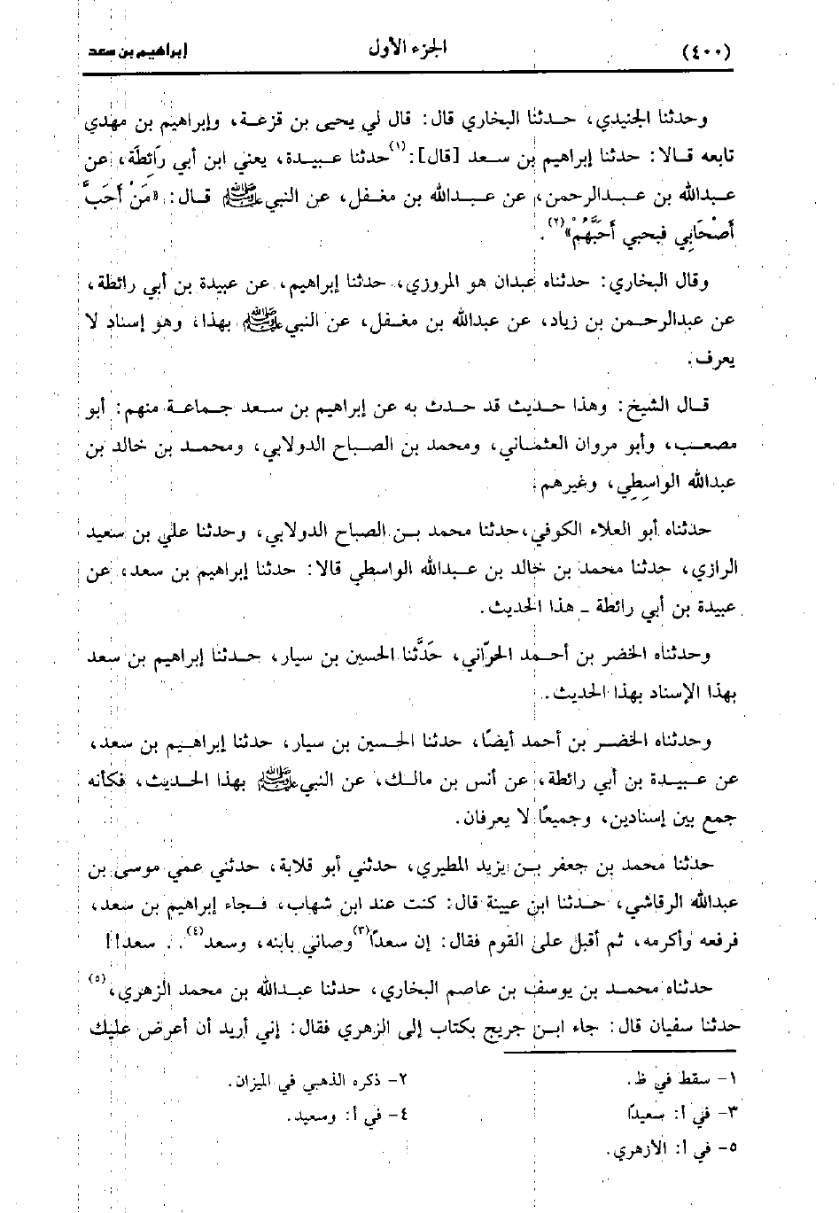 حدثناه مُحَمد بْنُ يُوسُفَ بْنِ عَاصِمٍ البُخارِيّ، حَدَّثَنا عَبد اللَّه بْنُ مُحَمد الزُّهْريّ، حَدَّثَنا سفيان، قال: جاء ابن جُرَيج بكتاب إلى الزُّهْريّ، فقال: إني أريد أن أعرض عليك