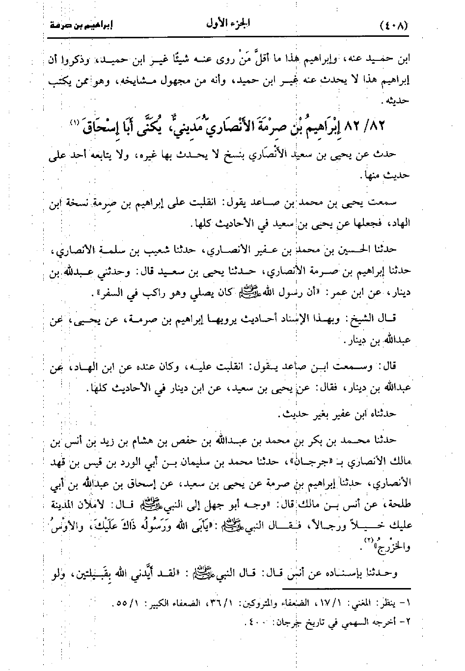 82- إبراهيم بن صرمة الأنصاري مديني، يُكَنَّى أبا إسحاق.