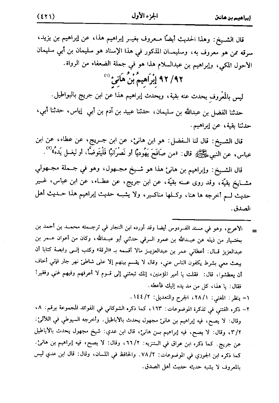 قَالَ الشَّيْخُ: وَإِبْرَاهِيمُ بْنُ هَانِئٍ هَذَا هُوَ شَيْخٌ مَجْهُولٌ، وَهو فِيْ جُمْلَةِ مَجْهُولِي مَشَايِخِ بَقِيَّةَ، وَقَدْ رَوَى عَنْهُ بَقِيَّةُ، عنِ ابْنِ جُرَيج، عَن عَطَاءٍ، عنِ ابْنِ عَبَّاسٍ غَيْرَ حَدِيثٍ لم أخرجه هَاهُنا، وَكُلُّهَا مَنَاكِيرُ، ولاَ يُشْبِهُ حَدِيثُ إِبْرَاهِيمَ هَذَا حَدِيثَ أَهْلِ الصِّدْقِ.