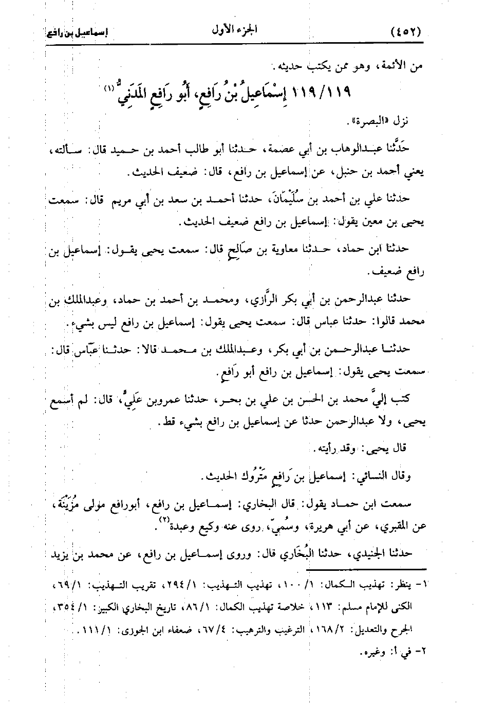 حَدَّثَنَا علي بن أحمد بن سليمان، حَدَّثَنا أَحْمَدُ بْنُ سَعْدِ بْنِ أَبِي مَرْيَمَ، قَالَ: سَمِعْتُ يَحْيى بْنَ مَعِين يقول: إسماعيل بن رافع ضعيف الحديث.
