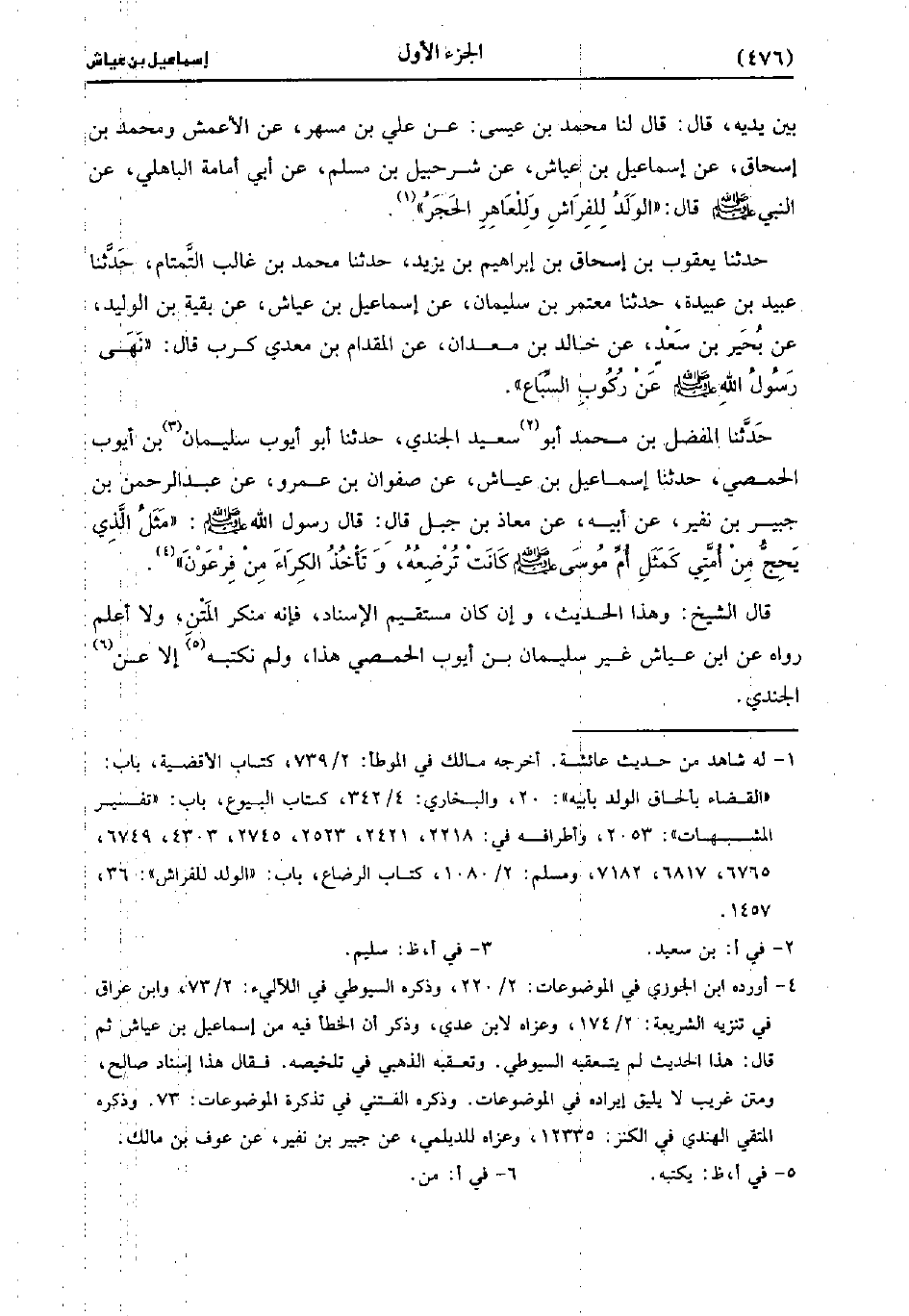 قَال لَنَا مُحَمد بْنُ عِيسَى عَنْ عَلِيِّ بْنِ مُسْهِرٍ، عَنِ الأَعْمَش، وَمُحمد بْنِ إِسْحَاقَ عَنْ إِسْمَاعِيلُ بْنُ عَيَّاشٍ عَنْ شُرَحْبِيلَ بْنِ مُسْلِمٍ، عَن أَبِي أُمَامَةَ الْبَاهِلِيِّ عَنِ النَّبِيِّ صَلَّى اللَّهُ عَلَيه وسَلَّم قَال: الْوَلَدُ لِلْفِرَاشِ وَلِلْعَاهِرِ الْحَجَرُ.