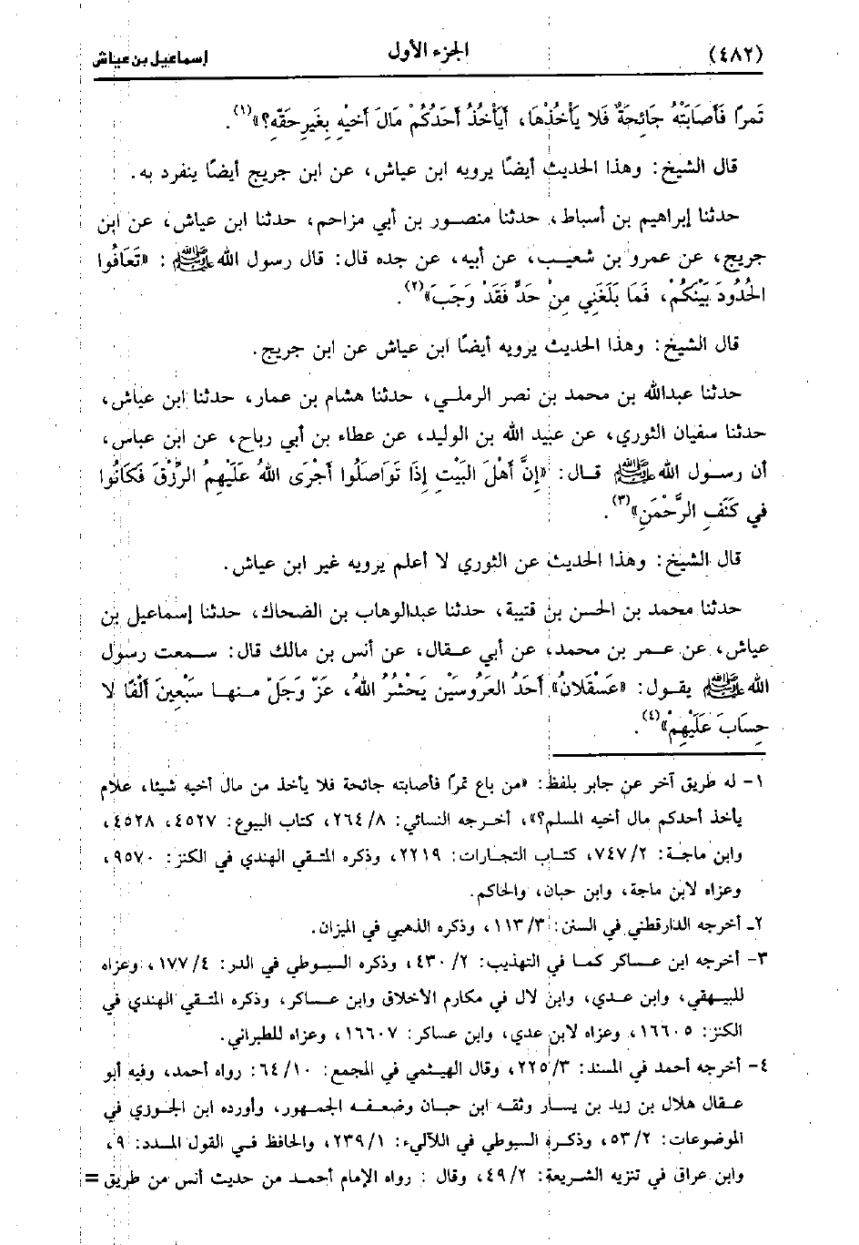 قَالَ الشَّيْخُ: وَهَذَا الْحَدِيثُ أَيضًا يَرْوِيهِ ابْنُ عَيَّاشٍ، عنِ ابْنِ جُرَيج أَيضًا يَنْفَرِدُ بِهِ.
