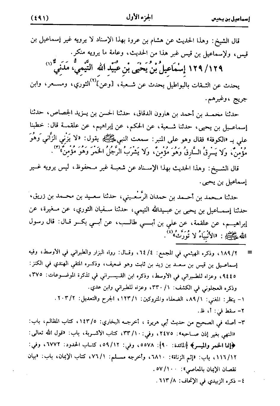 129- إسماعيل بن يَحْيى بن عُبَيد اللَّه التيمي مدني.