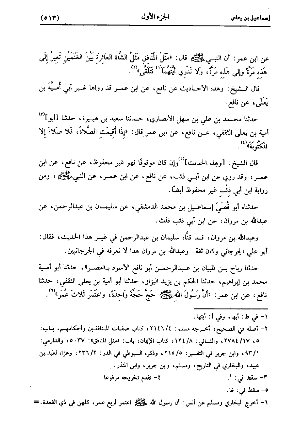 قَالَ الشَّيْخُ: وَهَذِهِ الأَحَادِيثُ عَنْ نَافِعٍ، عنِ ابن عُمَر قد رواه غَيْرُ أَبِي أُمَيَّةَ بْنِ يَعْلَى عَنْ نَافِعٍ.