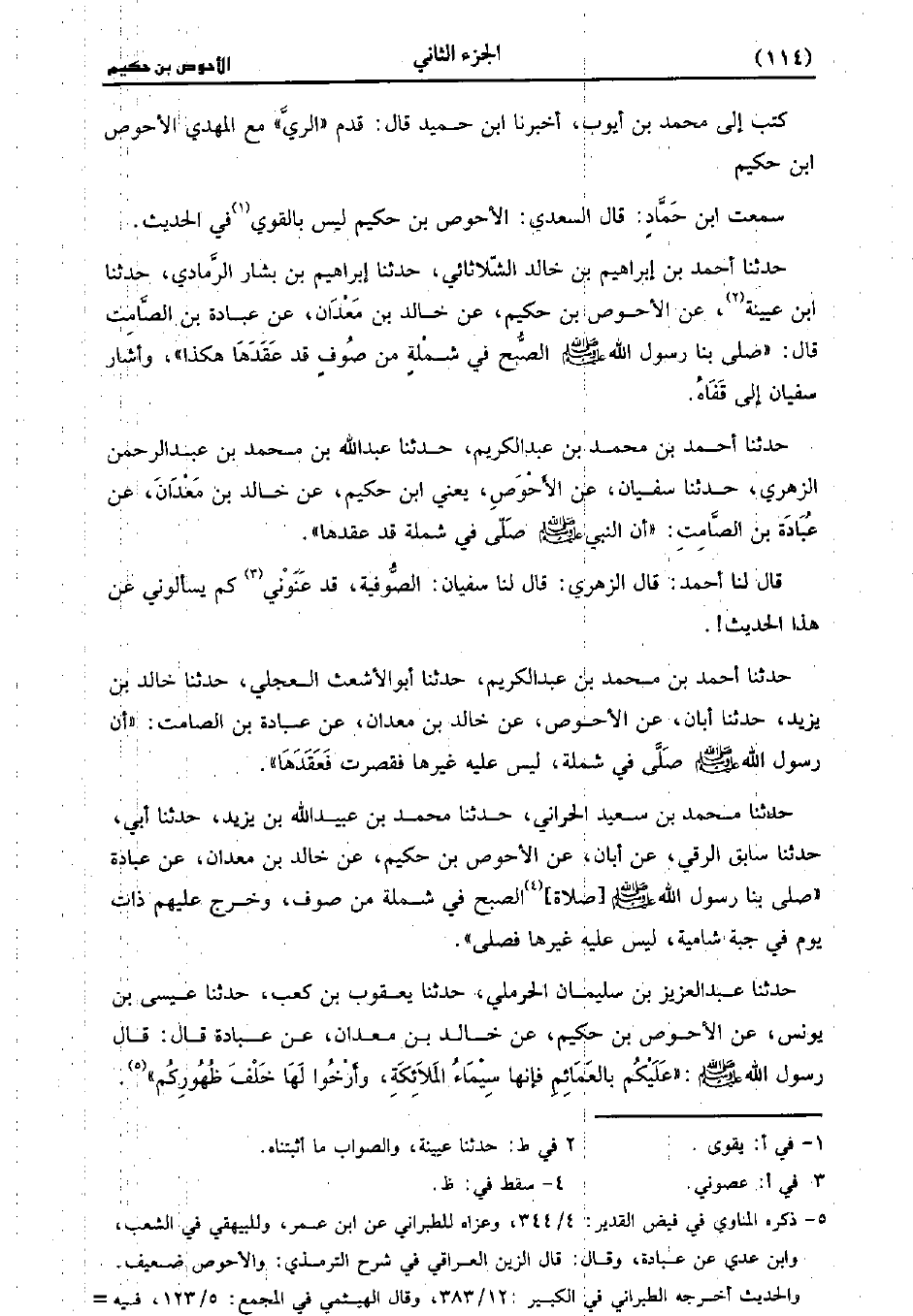 حَدَّثَنَا أَحْمَدُ بْنُ مُحَمد بْنِ عَبد الْكَرِيمِ، حَدَّثَنا عَبد اللَّهِ بْنُ مُحَمد بْنِ عَبد الرَّحْمَنِ الزُّهْريّ، حَدَّثَنا سُفيان، عَن الأَحْوَصِ يَعني ابْنَ حَكِيمٍ عَنْ خَالِدِ بْنِ مَعْدَانَ عَنْ عُبَادَةَ بْنِ الصَّامِتِ، أَن النَّبيّ صَلَّى اللَّهُ عَلَيهِ وَسلَّمَ صَلَّى فِي شَمْلَةٍ قَدْ عَقَدَهَا.