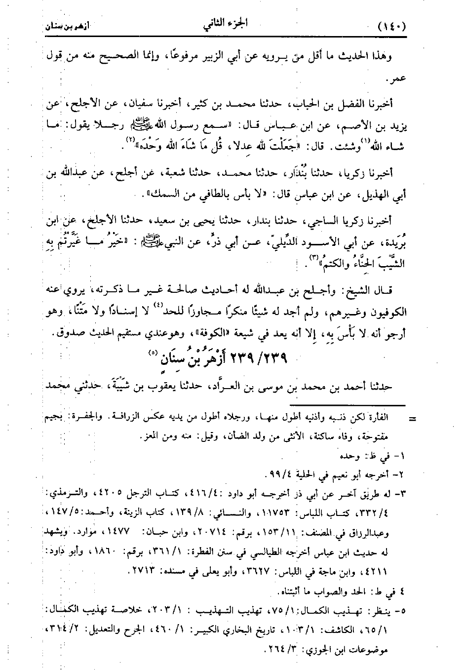 حَدَّثَنَا زَكَرِيَّا السَّاجِيُّ، حَدَّثَنا بُنْدَار، حَدَّثَنا يَحْيى بْنُ سَعِيد، حَدَّثَنا الأَجْلَحُ، عنِ ابْنِ بُرَيْدَةَ، عَن أَبِي الأَسْوَدِ الدَّيْلَي، عَن أَبِي ذَرٍّ عَنِ النَّبِيِّ صَلَّى اللَّهُ عَلَيهِ وَسلَّمَ خَيْرُ مَا غَيَّرْتُمْ بِهِ الشَّيْبَ الْحِنَّاءُ وَالْكَتْمُ.
