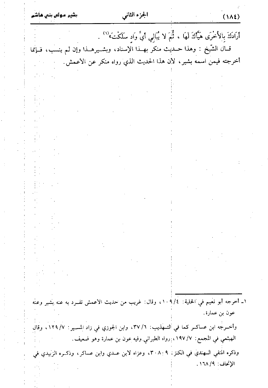 قَالَ الشَّيْخُ: وَهَذَا حَدِيثٌ مُنْكَرٌ بِهَذَا الإِسْنَادِ وَبَشِيرٌ هَذَا وَإِنْ لَمْ يُنْسَبْ فَإِنَّمَا أَخْرَجْتُهُ فِيمَنْ اسْمُهُ بَشِيرٌ لأَنَّ هَذَا الْحَدِيثَ الذي رواه منكر عن الأَعْمَش
