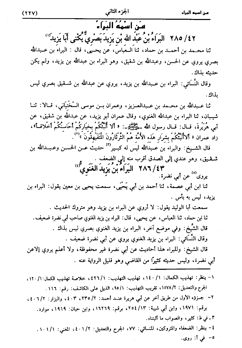 وقال النسائي البراء بْن يزيد الغنوي يروي، عَن أَبِي نضرة ضعيف.