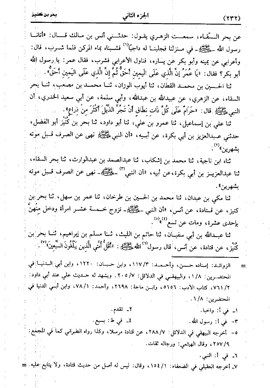 حَدَّثَنَا عَبد اللَّهِ بْنُ أَبِي سفيان، حَدَّثَنا حاتم بن الليث، حَدَّثَنا مُسْلِمُ بْنُ إِبْرَاهِيمَ، حَدَّثَنا بَحْرُ بْنُ كُنَيْزٍ، عَن قَتادَة، عَن أَنَس قَال رَسُول اللهِ صَلَّى اللَّهُ عَلَيهِ وَسلَّمَ أَقَلُّ أمتي الذين يبلغون السبعين