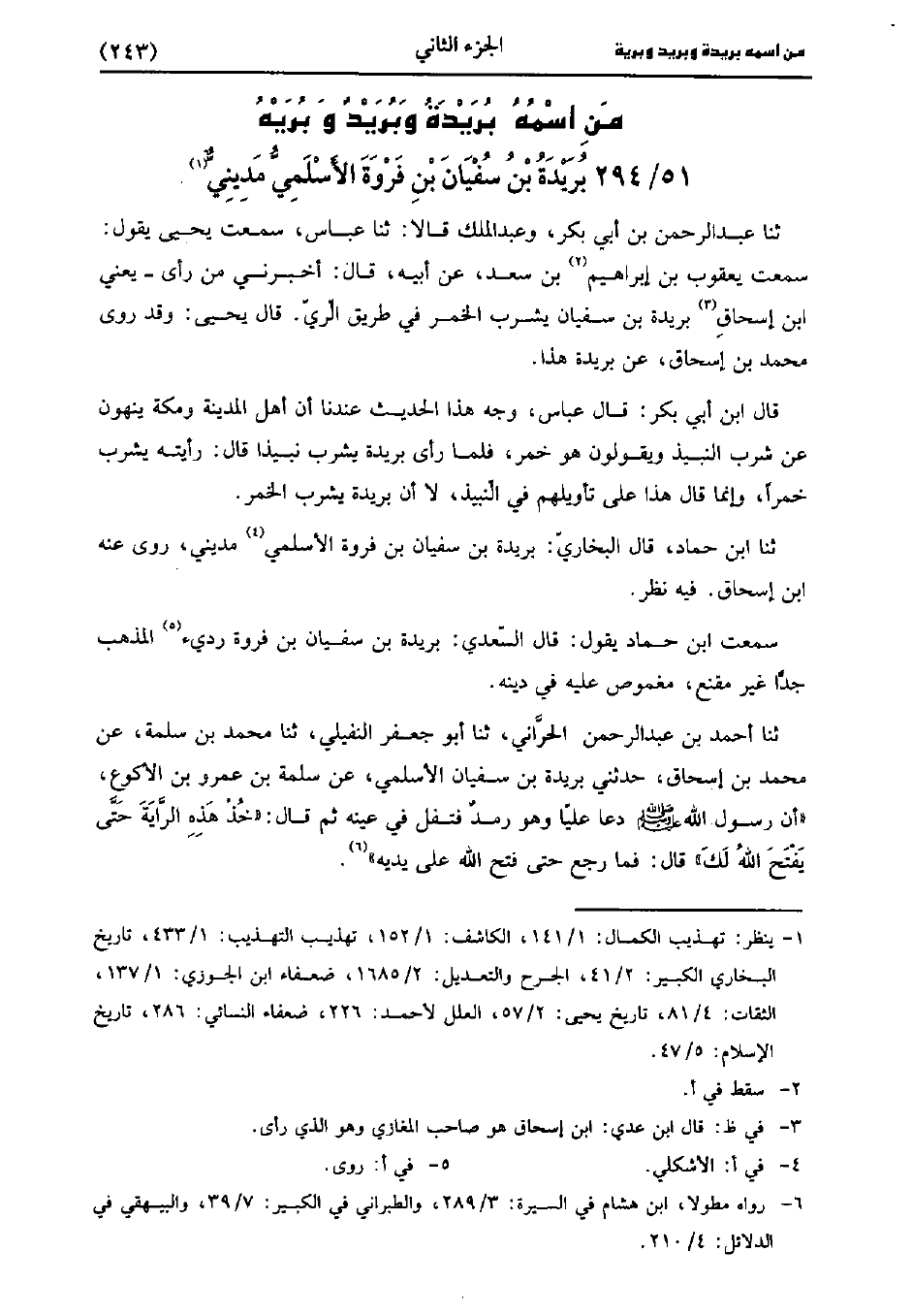 294- بريدة بْن سفيان بْن فروة الأسلمي مديني.