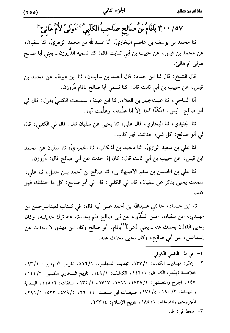 300- باذام بْن صَالِح صاحب الكلبي مولى لأم هانئ.