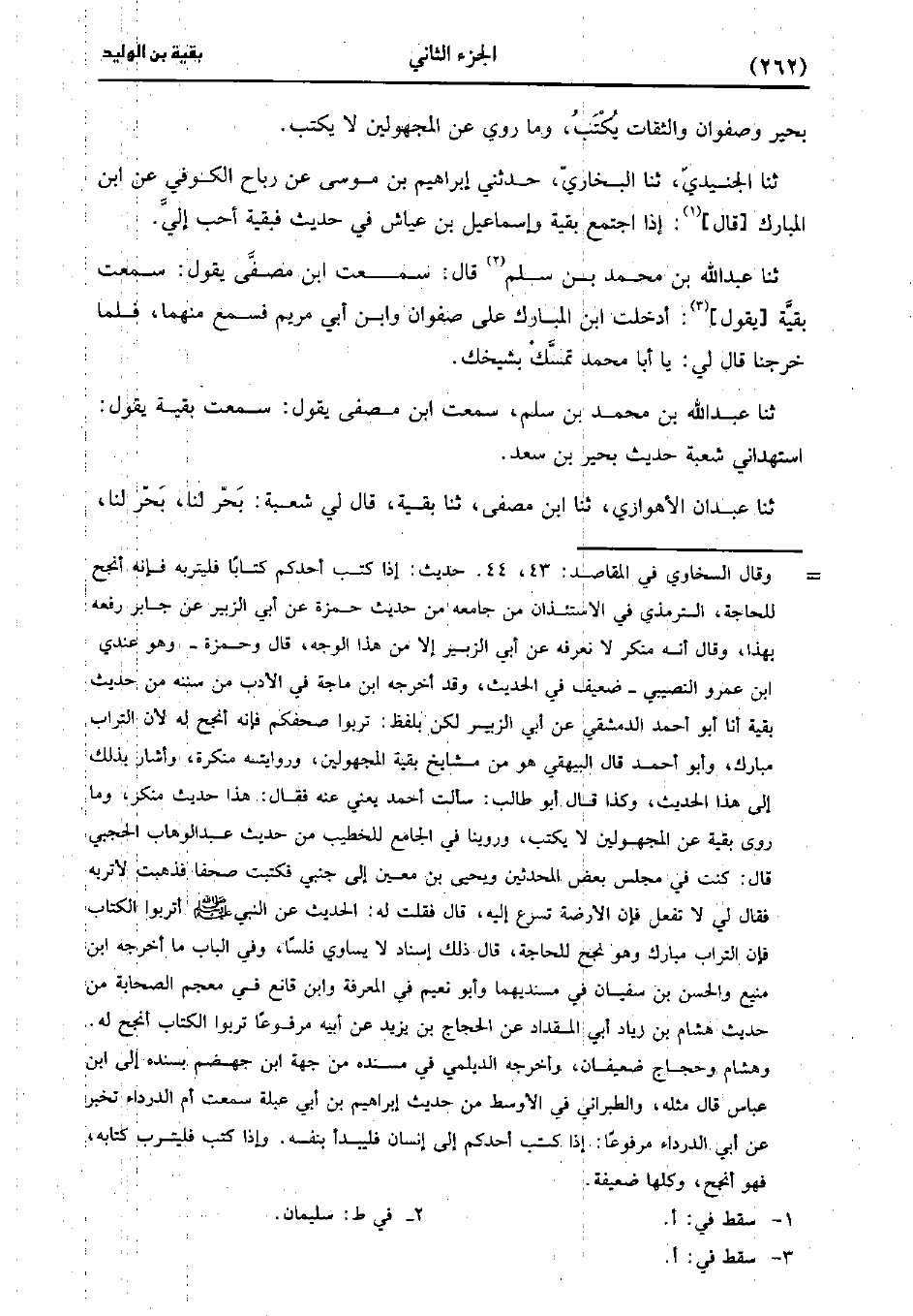 حَدَّثَنَا عَبد اللَّه بْنُ مُحَمد بْن سلم سمعتُ ابْن مصفى يَقُولُ: سَمعتُ بَقِيَّة يَقُولُ استهداني شُعْبَة حديث بحير بْن سعد.