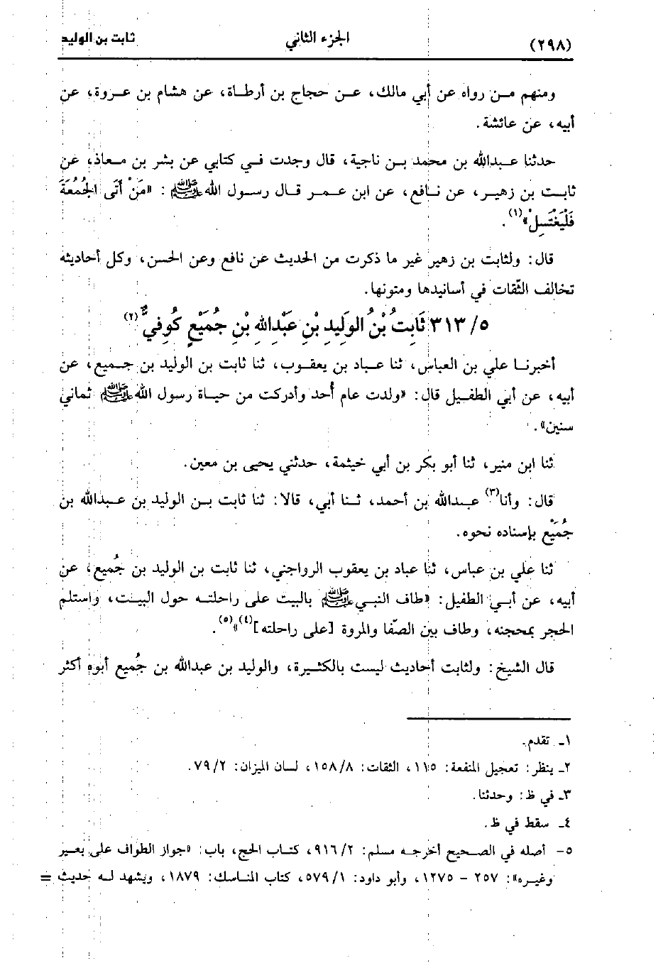 313- ثابت بْن الوليد بْن عَبد اللَّهِ بْن جميع كوفي.
