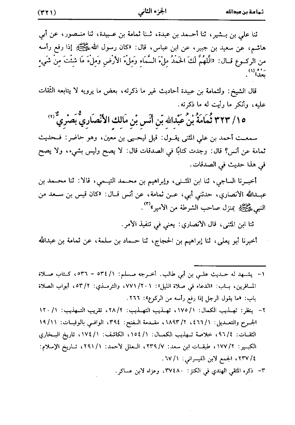 323- ثُمَامَةَ بْنِ عَبد اللَّهِ بْنِ أنس بْن مَالِك الأَنْصَارِيّ بصري.