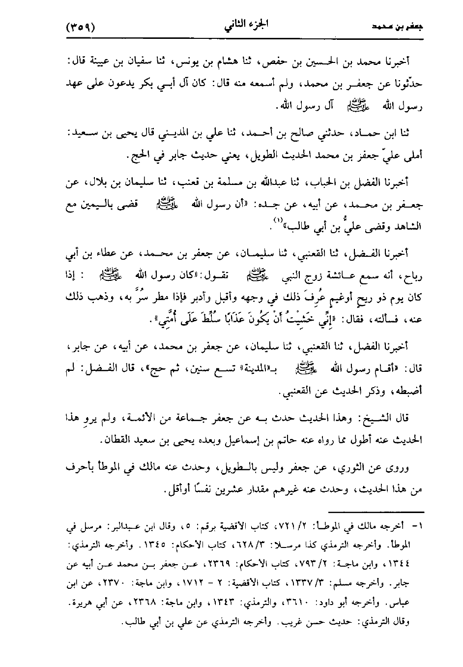 وروي عَن الثَّوْريّ عَن جَعْفَر وليس بالطويل وحدث عَنْهُ مَالِك فِي الموطأ بأحرف من هَذَا الْحَدِيث وحدث عَنْهُ غيرهم مقدار عشرين نفسا أو أقل