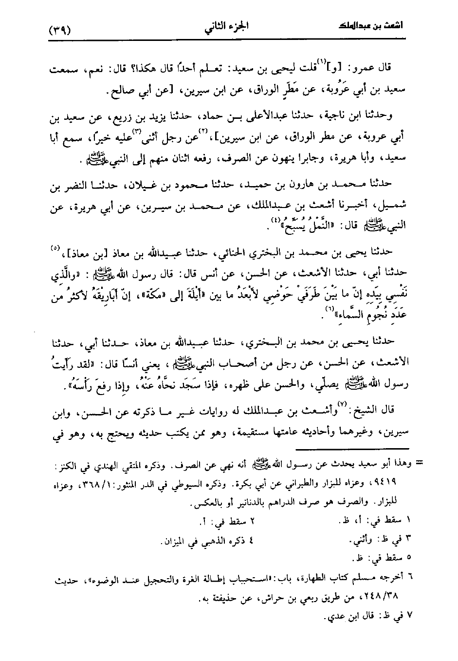 قَالَ عَمْرو وَقُلْتُ لِيَحْيَى بْنِ سَعِيد تَعْلَمُ أَحَدًا قَالَ هَكَذَا؟ قَال: نَعم سَمِعْتُ سَعِيد بْنَ أَبِي عَرُوبة عَنْ مَطَرٍ الْوَرَّاقِ، عنِ ابْنِ سِيرِين، عَن أَبِي صالح (ح) وحدثنا بن نَاجِيَةَ، حَدَّثَنا عَبد الأَعْلَى بْنُ حَمَّادٍ، حَدَّثَنا يَزِيدُ بْنُ زُرَيْعٍ عَنْ سَعِيد بْنِ أَبِي عَرُوبة عَنْ مَطَرٍ الْوَرَّاقِ، عنِ ابْنِ سِيرِين، عَنْ رَجُلٍ أَثْنَى عَلَيْهِ خَيْرًا سَمِعَ أَبَا سَعِيد وَأَبَا هريرة وجابر يَنْهَوْنَ عَنِ الصَّرْفِ رَفَعَهُ اثْنَانُ مِنْهُمْ إِلَى النَّبِيِّ صَلَّى اللَّهُ عَلَيهِ وَسلَّمَ.