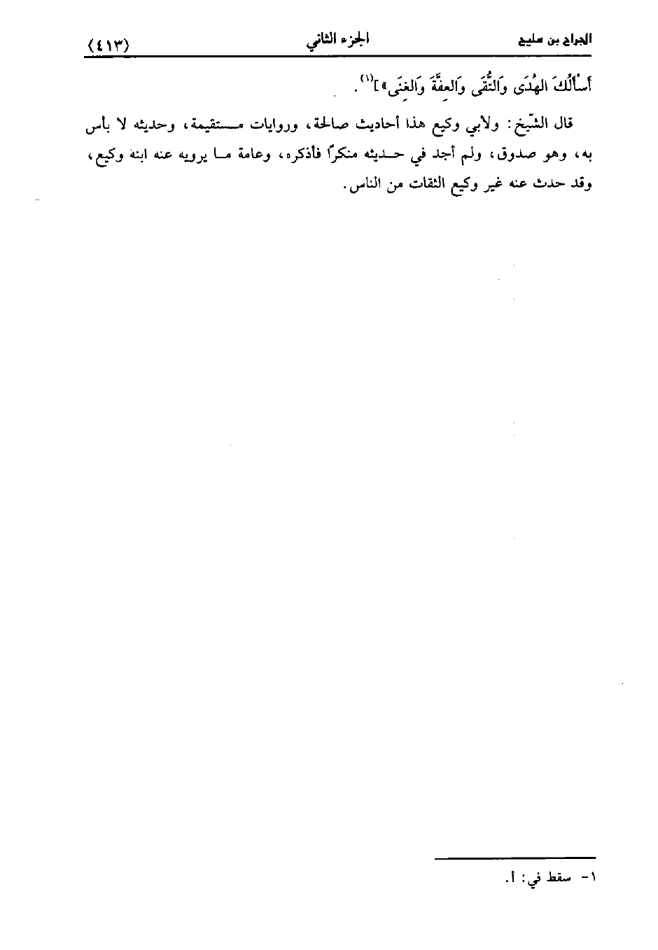 قَالَ الشَّيْخُ: ولأبي وكيع هَذَا أحاديث صالحة وروايات مستقيمة وحديثه لا بأس به، وَهو صدوق ولم أجد فِي حدثه منكرا فأذكره وعامة ما يرويه عَنْهُ ابنه وكيع وقد حدث عَنْهُ غير وكيع الثقات من الناس