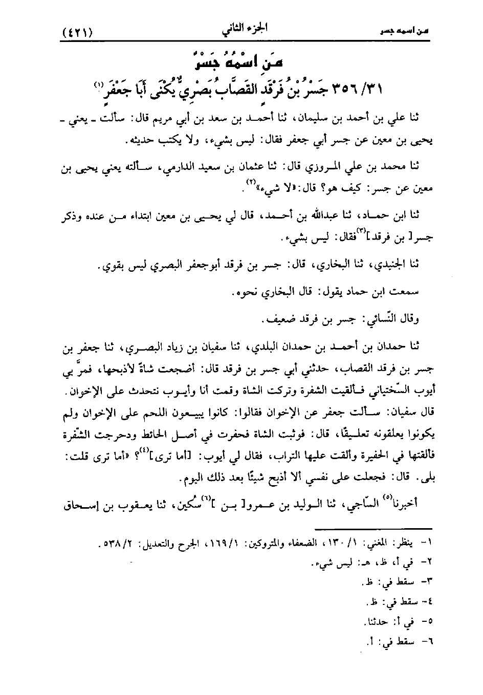 356- جسر بْن فرقد القصاب بصري، يُكَنَّى أبا جعفر.