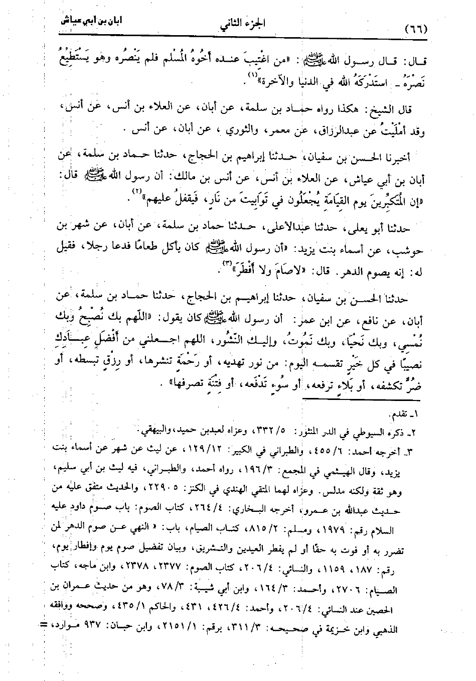 قَالَ الشَّيْخُ: هَكَذَا رَوَاهُ حَمَّادُ بْنُ سَلَمَةَ، عَنْ أَبَان، عَن العَلاَء بْنِ أَنَسٍ، عَن أَنَس وَقَدْ أُمْلَيْتُ عَنْ عَبد الرَّزَّاق، عَن مَعْمَر وَالثَّوْرِيِّ عَنْ أَبَان عَنْ أَنَسٍ.