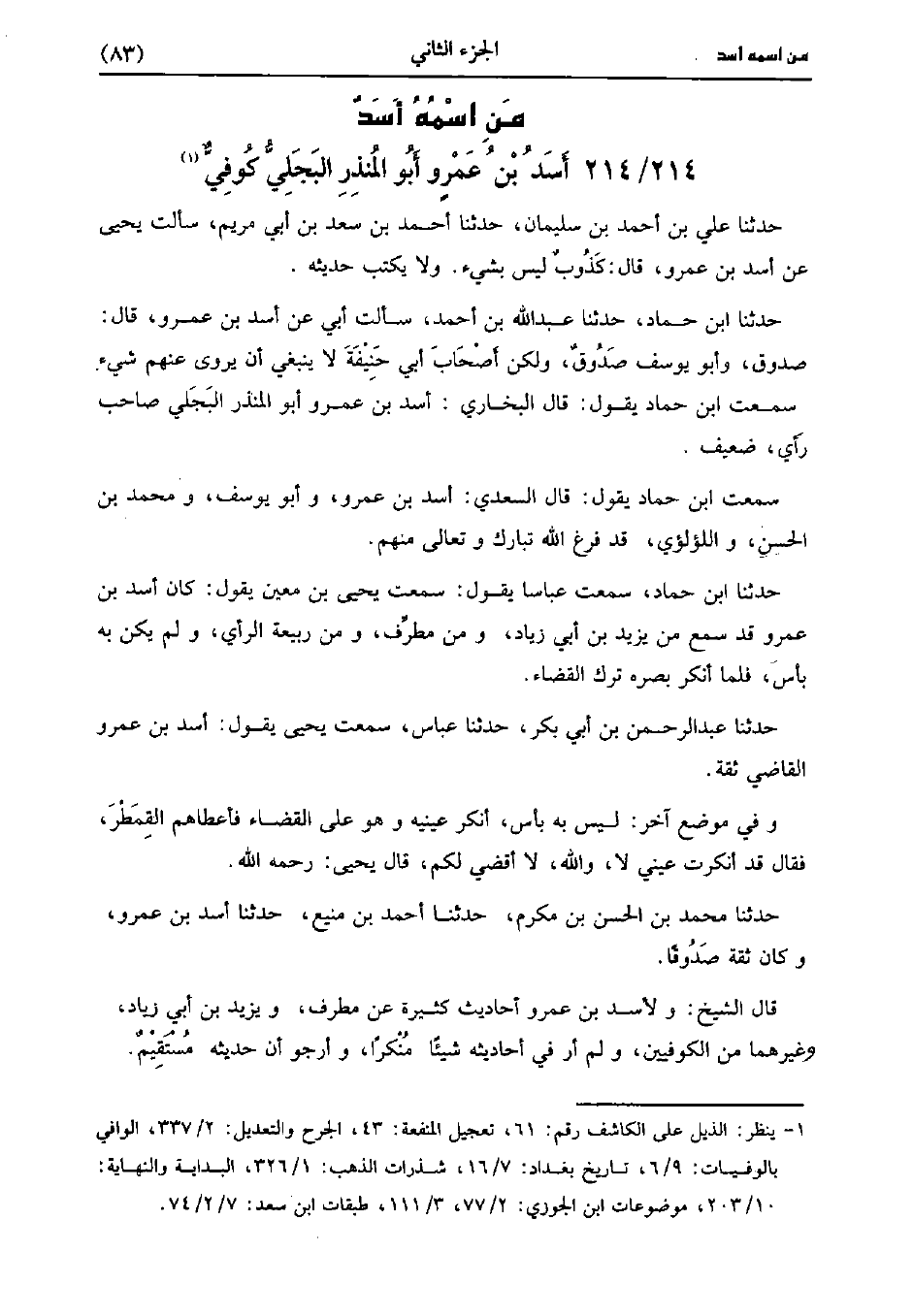 214- أسد بْن عَمْرو أَبُو المنذر البجلي كوفي.