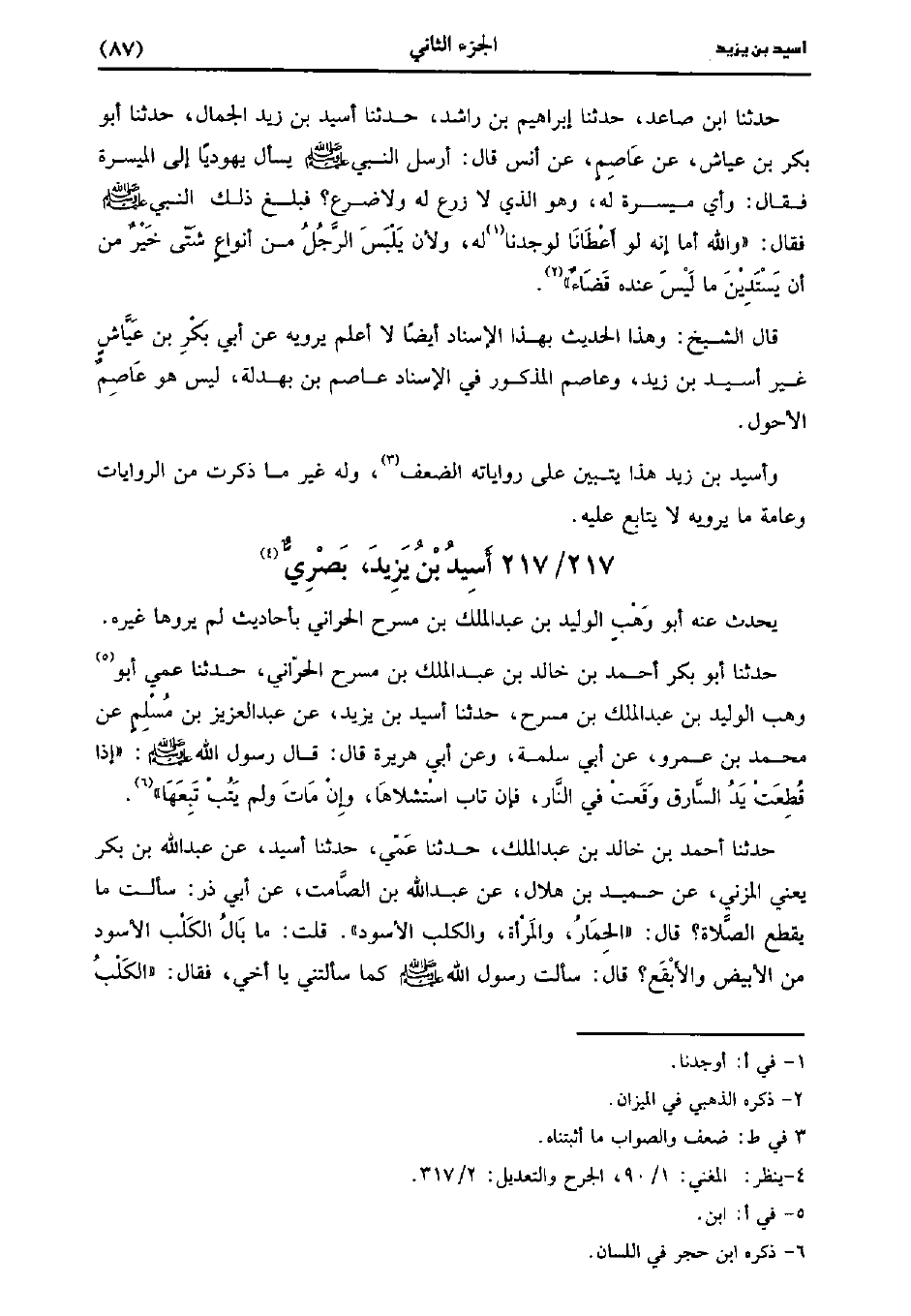 وَأُسَيْدُ بْنُ زَيْدٍ هَذَا يَتَبَيَّنَ عَلَى رِوَايَاتِهِ الضَّعْفُ وَلَهُ غَيْرُ مَا ذَكَرْتُ مِنَ الرِّوَايَاتِ وَعَامَّةُ مَا يَرْوِيهِ، لاَ يُتَابَعُ عَليه.